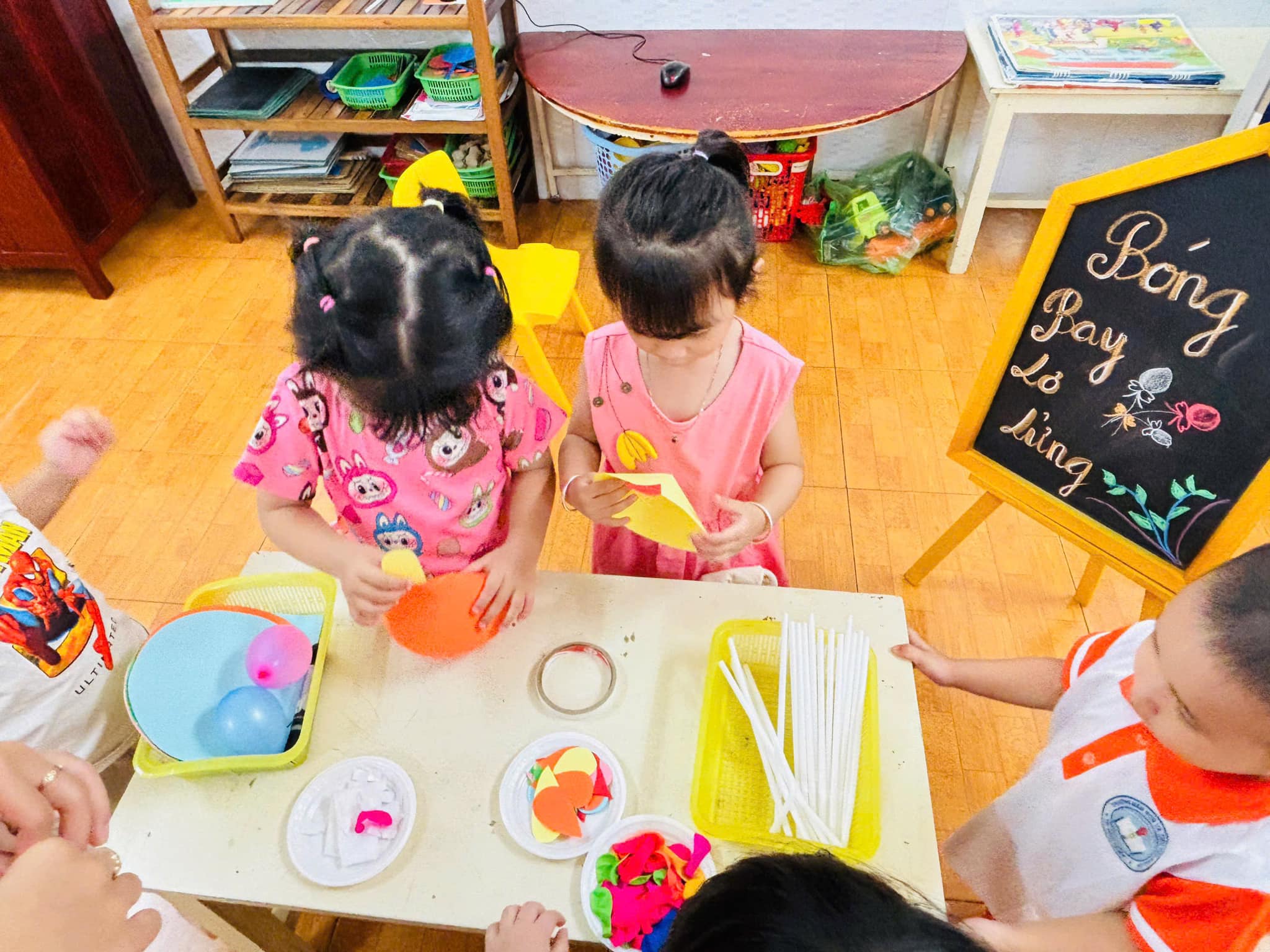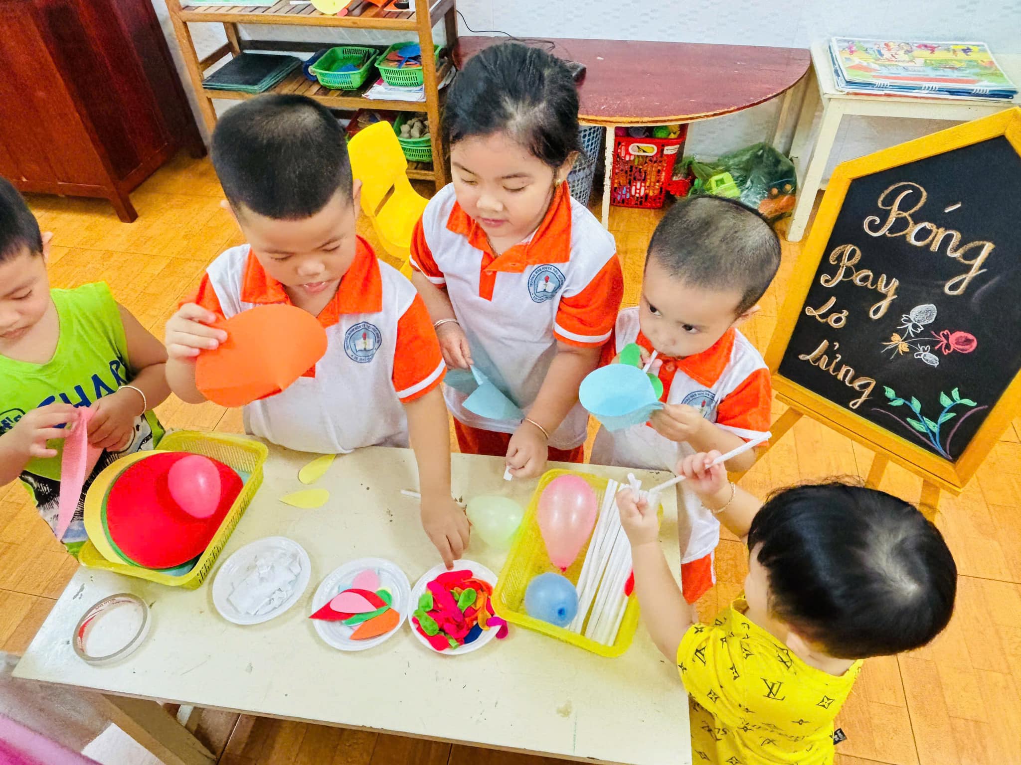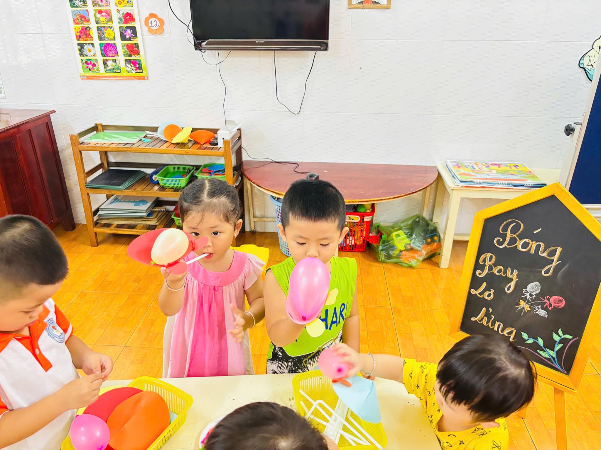 Các bé tại trường Mầm Non Khải Trí đã có cơ hội tham gia vào một thí nghiệm thú vị mang tên "Bóng Bay Lơ Lửng". Đây không chỉ là một hoạt động giải trí mà còn là một cách hữu hiệu để các bé tìm hiểu về các khái niệm vật lý cơ bản thông qua việc chơi đùa.