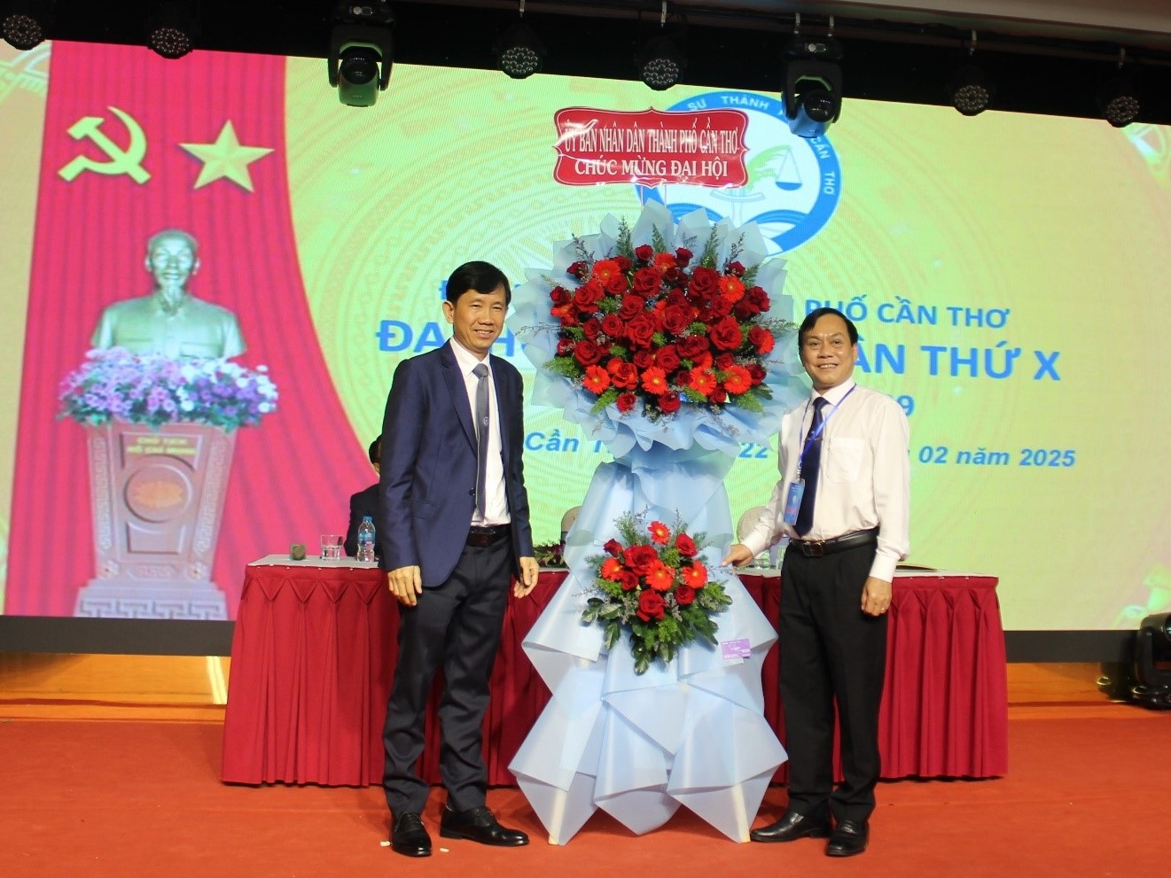 Ông Nguyễn Ngọc Hè, Phó Chủ tịch UBND TP. Cần Thơ tặng hoa chúc mừng Đại hội (Ảnh Quang Nguyễn)