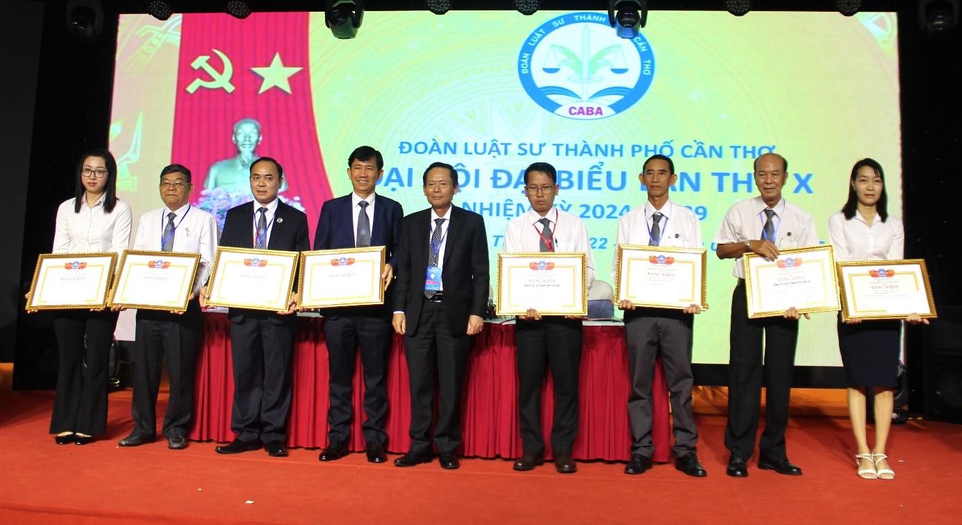 Dịp này, Liên đoàn Luật sư Việt Nam đã tặng Bằng khen cho Đoàn Luật sư TP. Cần Thơ vì đã có thành tích xuất sắc trong xây dựng và phát triển Đoàn Luật sư năm 2024; tặng Bằng khen cho tổ chức hành nghề luật sư vì có thành tích trong hoạt động hành nghề luật sư năm 2024; tặng Bằng khen cho cá nhân, Luật sư vì đã có thành tích trong xây dựng Đoàn Luật sư và hoạt động hành nghề Luật sư năm 2024, tặng kỷ niệm chương “Vì sự nghiệp phát triển Luật sư Việt Nam” cho Luật sư có thời gian hành nghề trên 15 năm. Đoàn Luật sư tặng Giấy khen cho tổ chức hành nghề luật sư, Luật sư đã có thành tích nhiều lần đóng góp tài chính cho Đoàn Luật sư TP. Cần Thơ trong nhiệm kỳ IX (2019-2024); tặng Giấy khen cho tổ chức hành nghề luật sư đã có thành tích nhiều lần tham gia vụ án chỉ định theo phân công của Đoàn Luật sư TP. Cần Thơ trong nhiệm kỳ IX (2019-2024); tặng Giấy khen cho 01 Luật sư vì đã có thành tích trong xây dựng Đoàn Luật sư và hoạt động hành nghề luật sư trong năm 2024.
