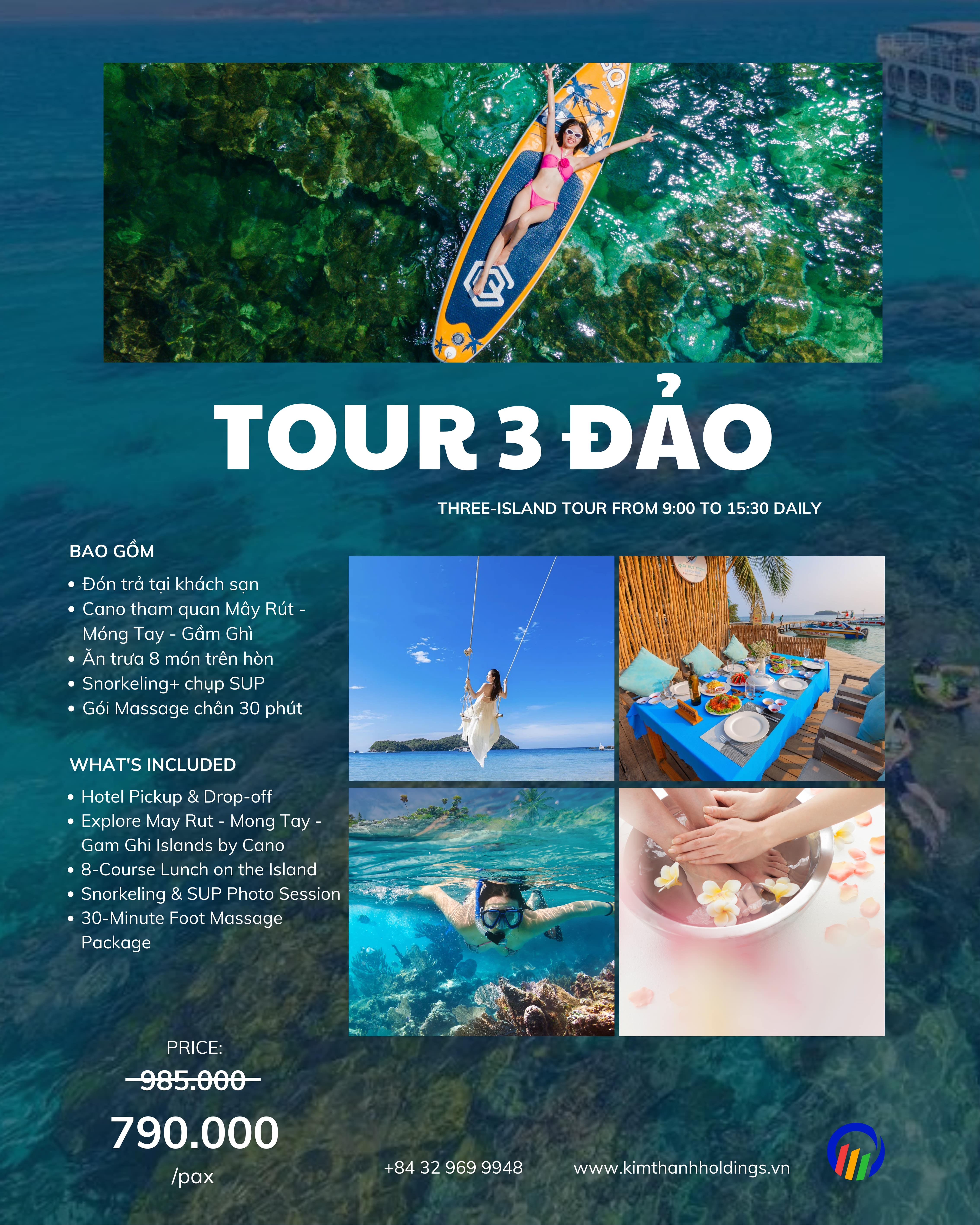 Chuyến Khám Phá 3 Đảo là một trải thú vị và chất lượng với sự kết hợp giữa thiên nhiên hoang sơ và các dịch vụ thư giãn độc đáo, mang đến cho bạn những khoảnh khắc thư giãn và thú vị tại Phú Quốc.