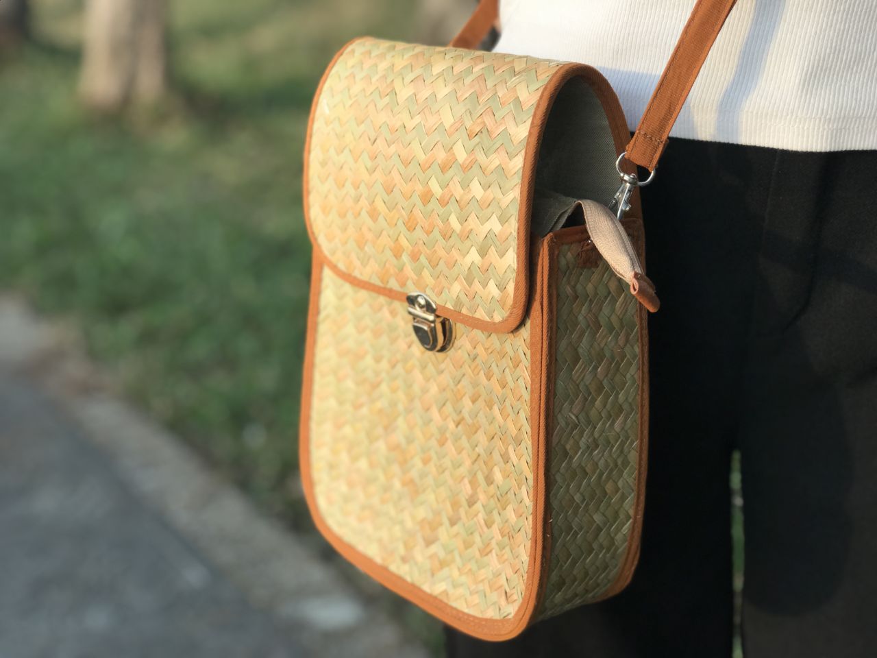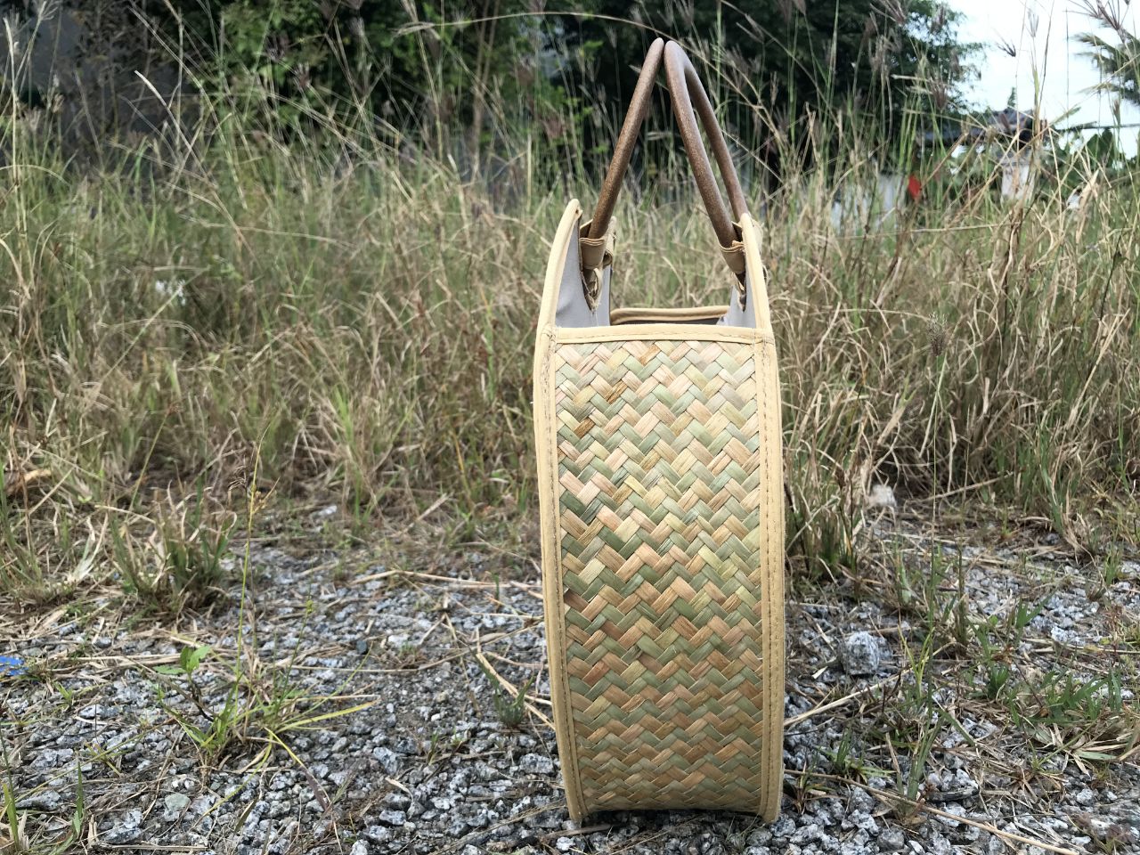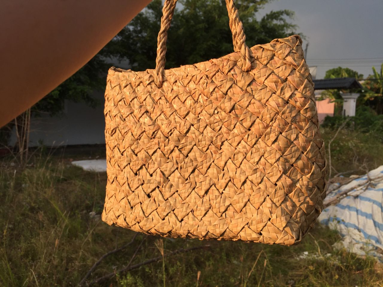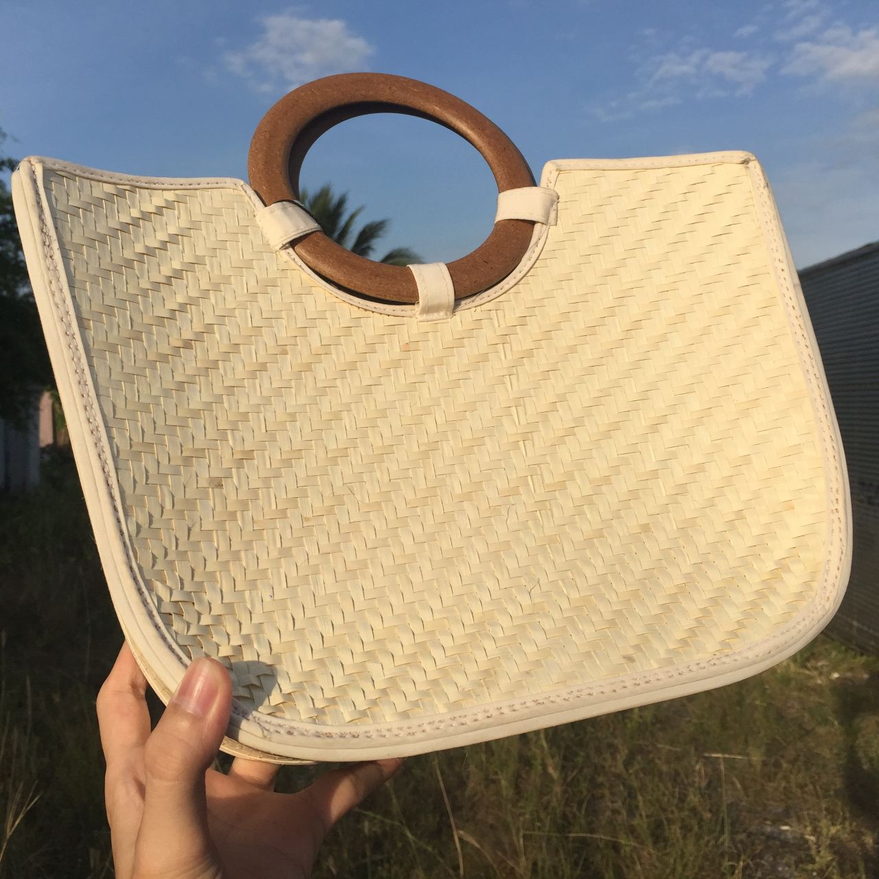 Giỏ bàng xách tay là một trong các sản phẩm nằm trong dòng balo làm từ cây cỏ bàng 100% ngoài tự nhiên. Được làm thủ công bởi các nghệ nhân địa phương, sản phẩm được đan từng cây cỏ khô xen kẻ vào nhau, tạo ra sự chắc chắn. Với chất liệu thân thiện với môi trường và màu nâu truyền thống của giỏ phù hợp cho các dịp du xuân, du lịch sinh thái, chụp với phong cảnh thiên nhiên,...
