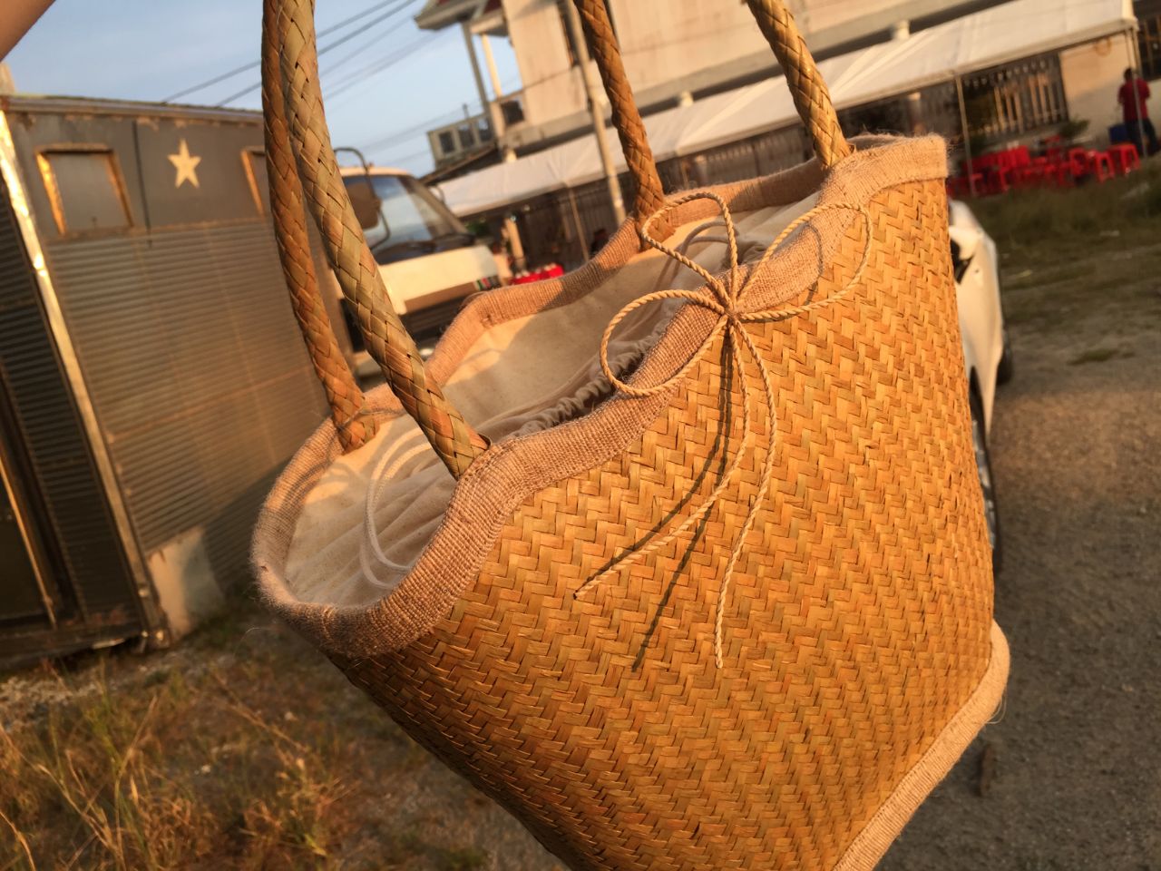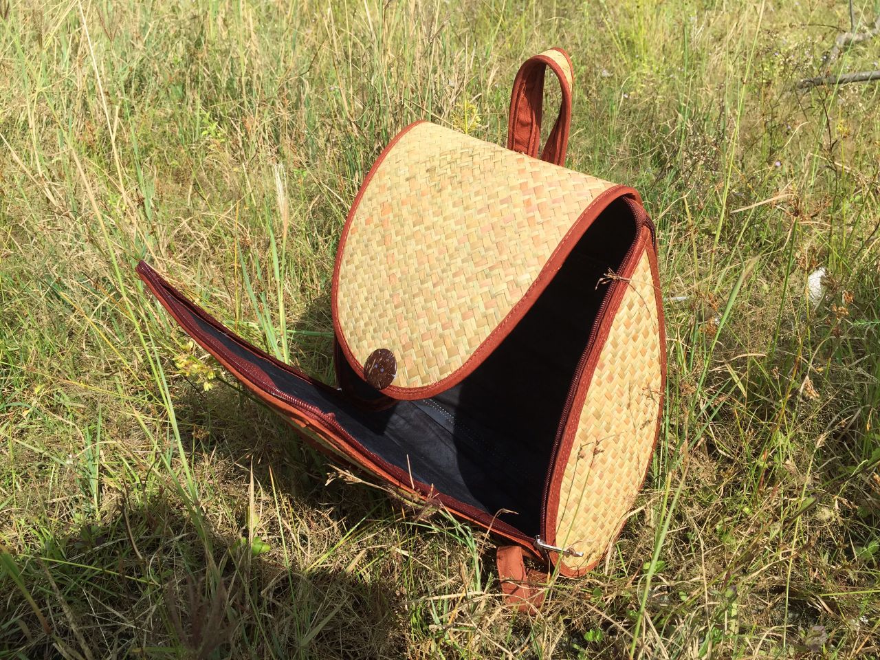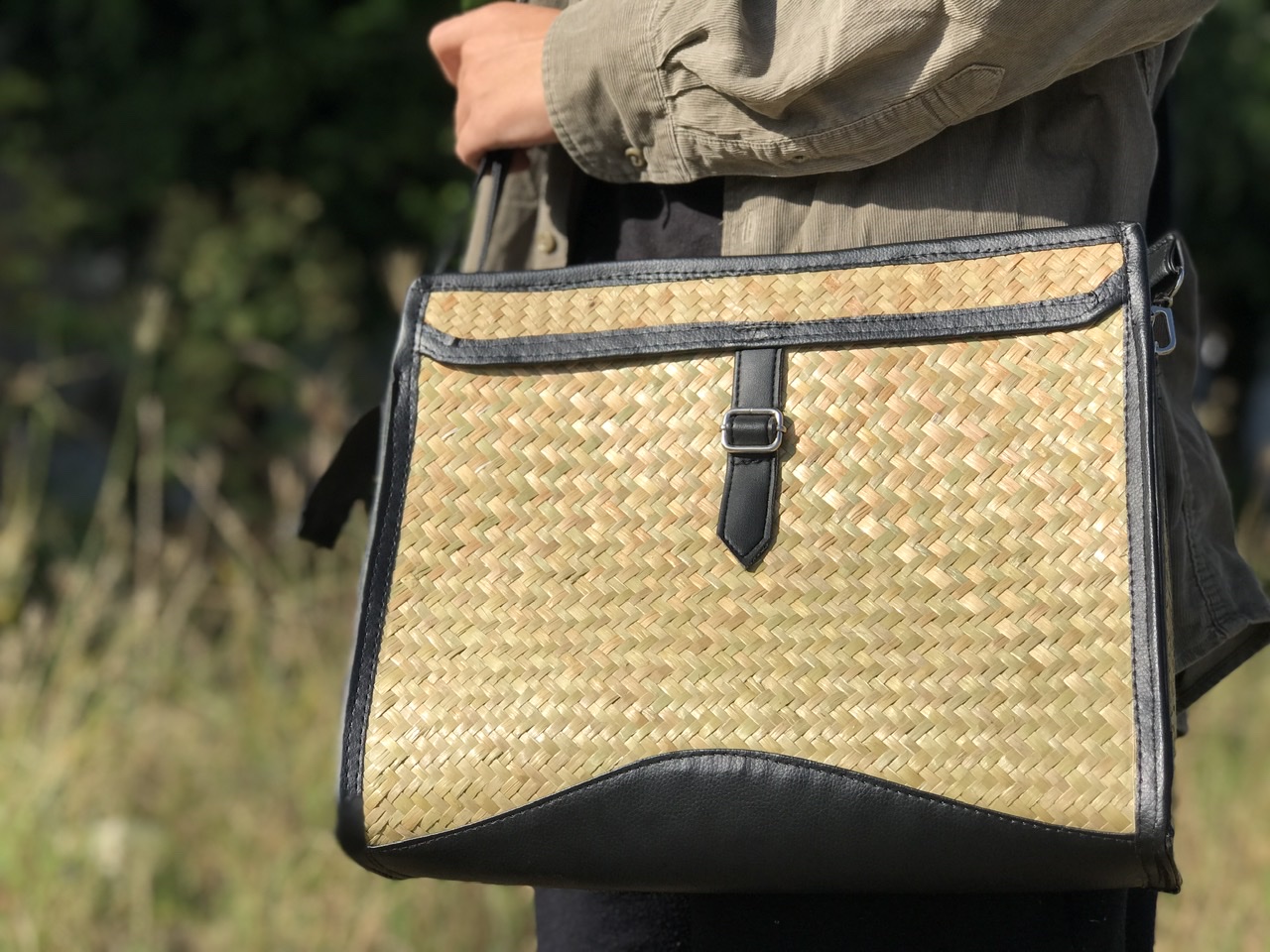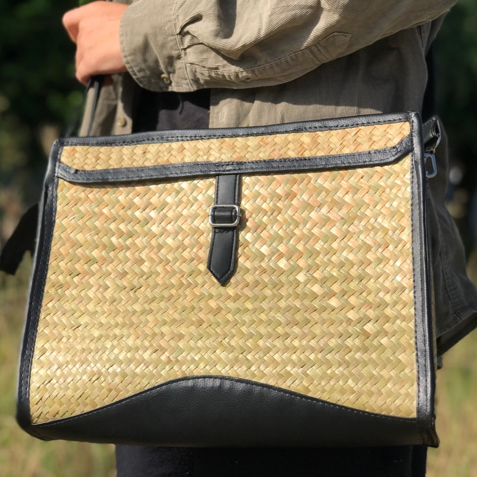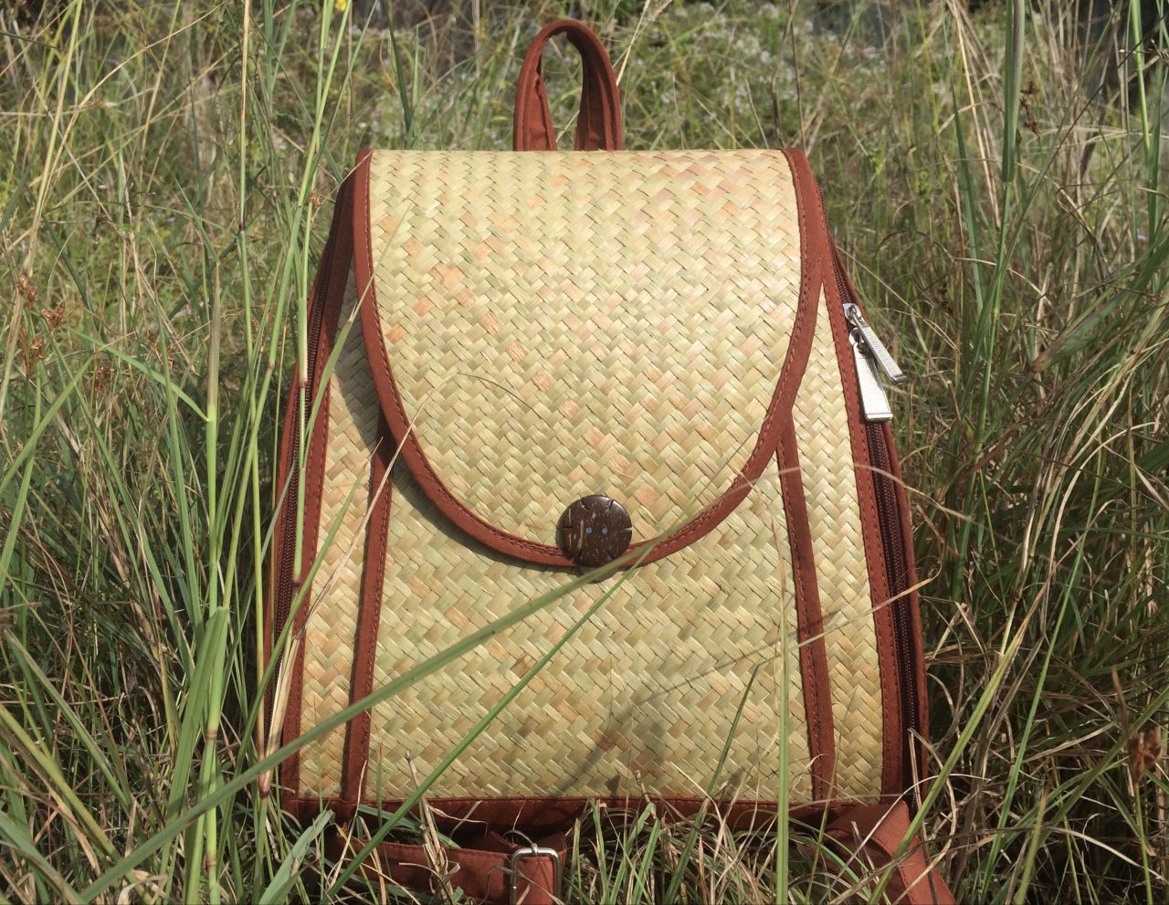 Giỏ bàng xách tay là một trong các sản phẩm nằm trong dòng balo làm từ cây cỏ bàng 100% ngoài tự nhiên. Được làm thủ công bởi các nghệ nhân địa phương, sản phẩm được đan từng cây cỏ khô xen kẻ vào nhau, tạo ra sự chắc chắn. Với chất liệu thân thiện với môi trường và màu nâu truyền thống của giỏ phù hợp cho các dịp du xuân, du lịch sinh thái, chụp với phong cảnh thiên nhiên,...