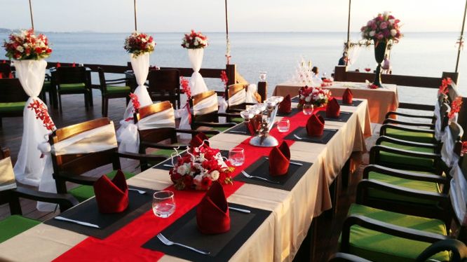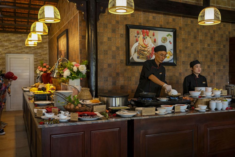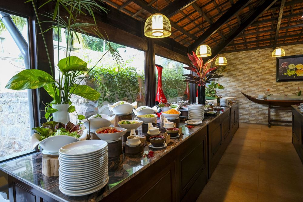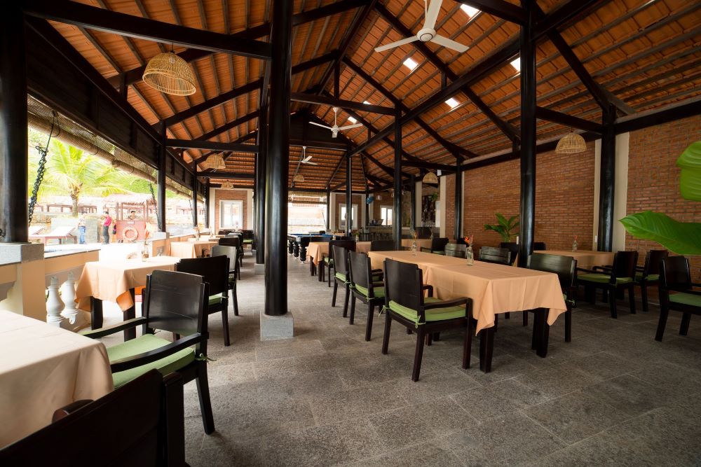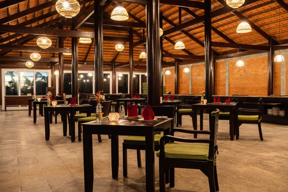 Nhà hàng Seasense mang kiến trúc nhà gỗ Việt, thoáng mát, lãng mạn sẽ là nơi lý tưởng để quý khách thưởng thức những bữa ăn cùng với những người thân yêu của mình. Không nơi đâu trên nước Việt có cảnh hoàng hôn đẹp như thế, ánh nắng vàng nhẹ phản chiếu xuống mặt nước biển trong xanh trông như một bức tranh thủy mạc.