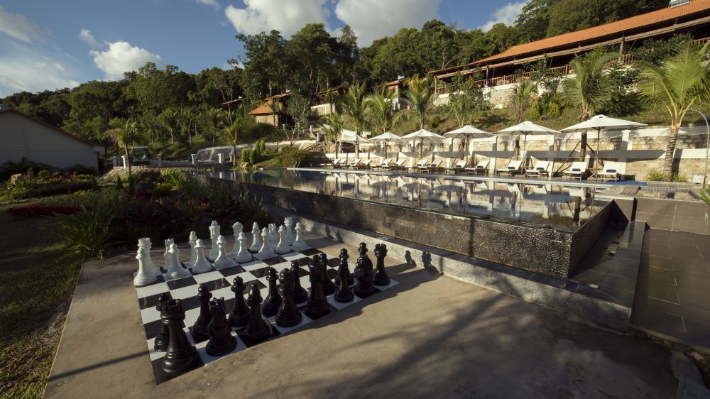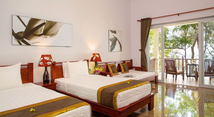 Được che chở bởi những tán rừng nhiệt đới, ban công của các phòng Deluxe rất mát mẻ và trong lành. Ngồi tại ban công và đón nhận khí Oxy dồi dào được cung cấp bởi các tán lá rừng là liệu pháp chữa trị tuyệt vời cho du khách sau những ngày làm việc mệt mỏi. Không được quá sát biển như những loại villa khác, nhưng cũng đủ để du khách cảm nhận được những làn gió biển trong lành và nhìn thấy biển.