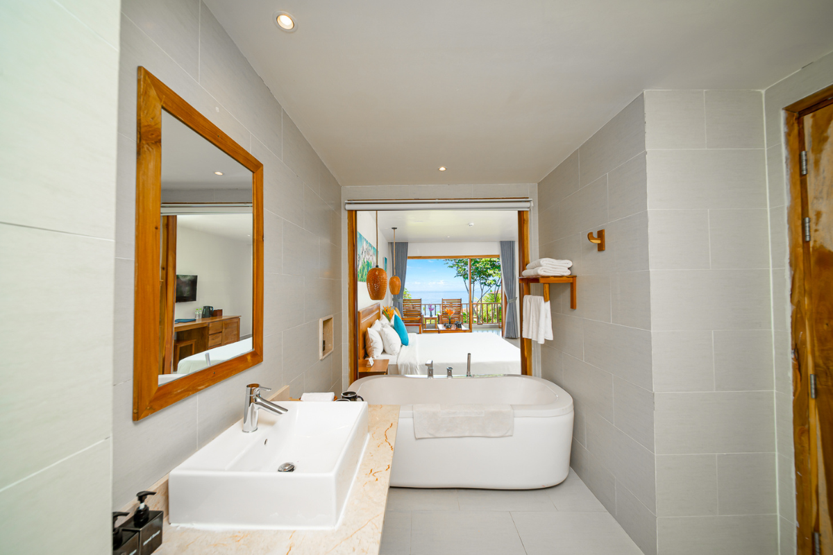 Connecting Deluxe Ocean View mang đến sự kết hợp hoàn hảo giữa tiện nghi và thiên nhiên. Với diện tích 90m², đây là lựa chọn lý tưởng cho gia đình hoặc nhóm bạn muốn tận hưởng kỳ nghỉ thoải mái nhưng vẫn gần gũi. Phòng có giường đôi linh hoạt, nội thất tinh tế, lối thông giữa hai phòng giúp mở rộng không gian mà vẫn đảm bảo sự riêng tư.