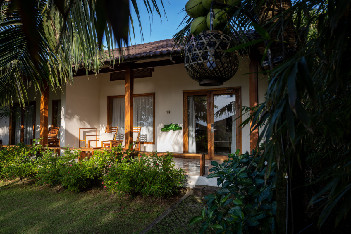 Villa Garden View ẩn mình giữa khu vườn nhiệt đới xanh mát, mang đến không gian nghỉ dưỡng rộng rãi 65m², nơi bạn hòa mình vào thiên nhiên trong sự riêng tư tuyệt đối. Khu vực tiếp khách với ghế sofa đầy màu sắc là nơi lý tưởng để thư giãn cùng tách trà hoặc cuốn sách yêu thích. Villa Garden View là điểm dừng chân hoàn hảo để tận hưởng sự yên bình của thiên nhiên trong không gian tiện nghi và sang trọng.