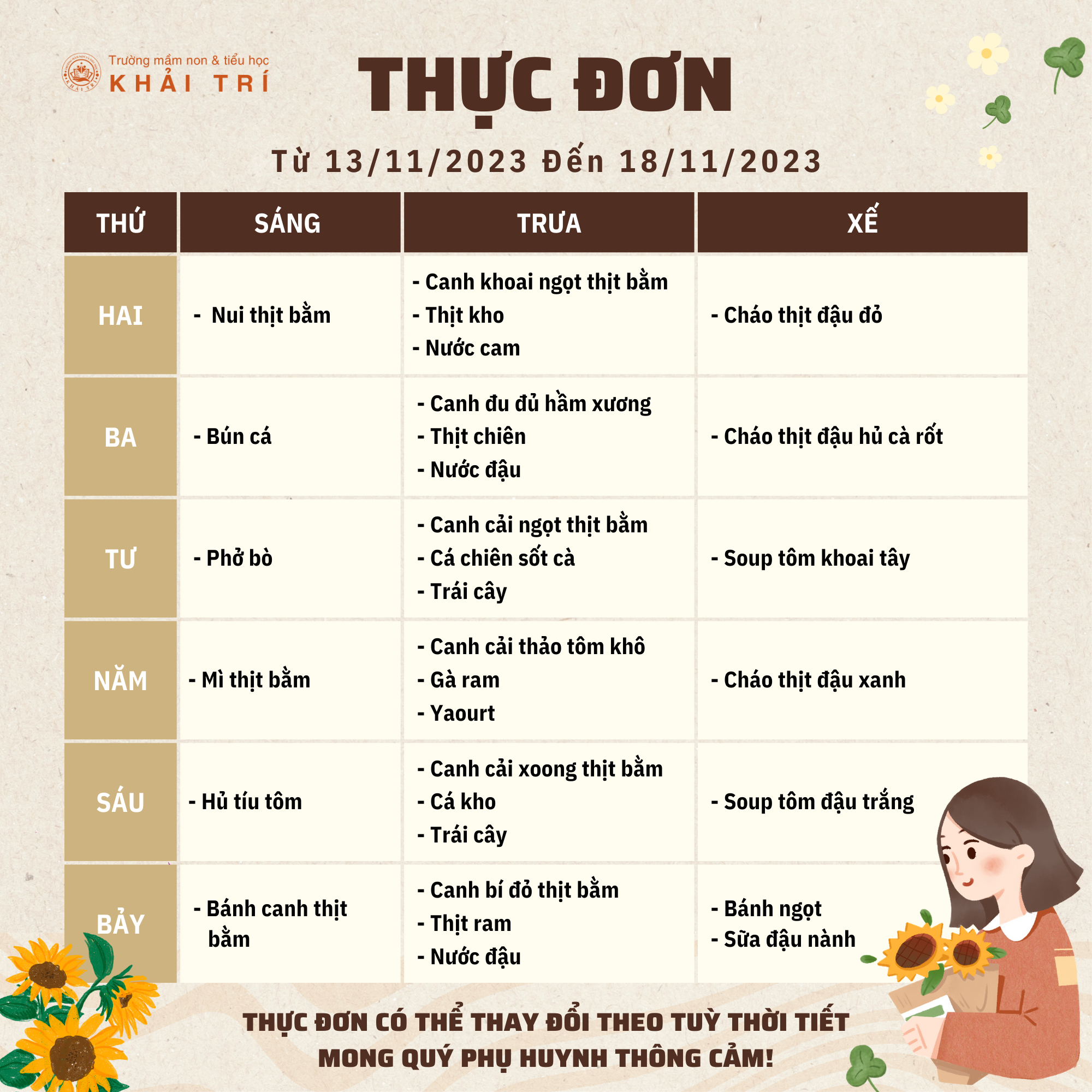 Thực Đơn Tuần Mới (Từ 13/11 Đến 18/11)