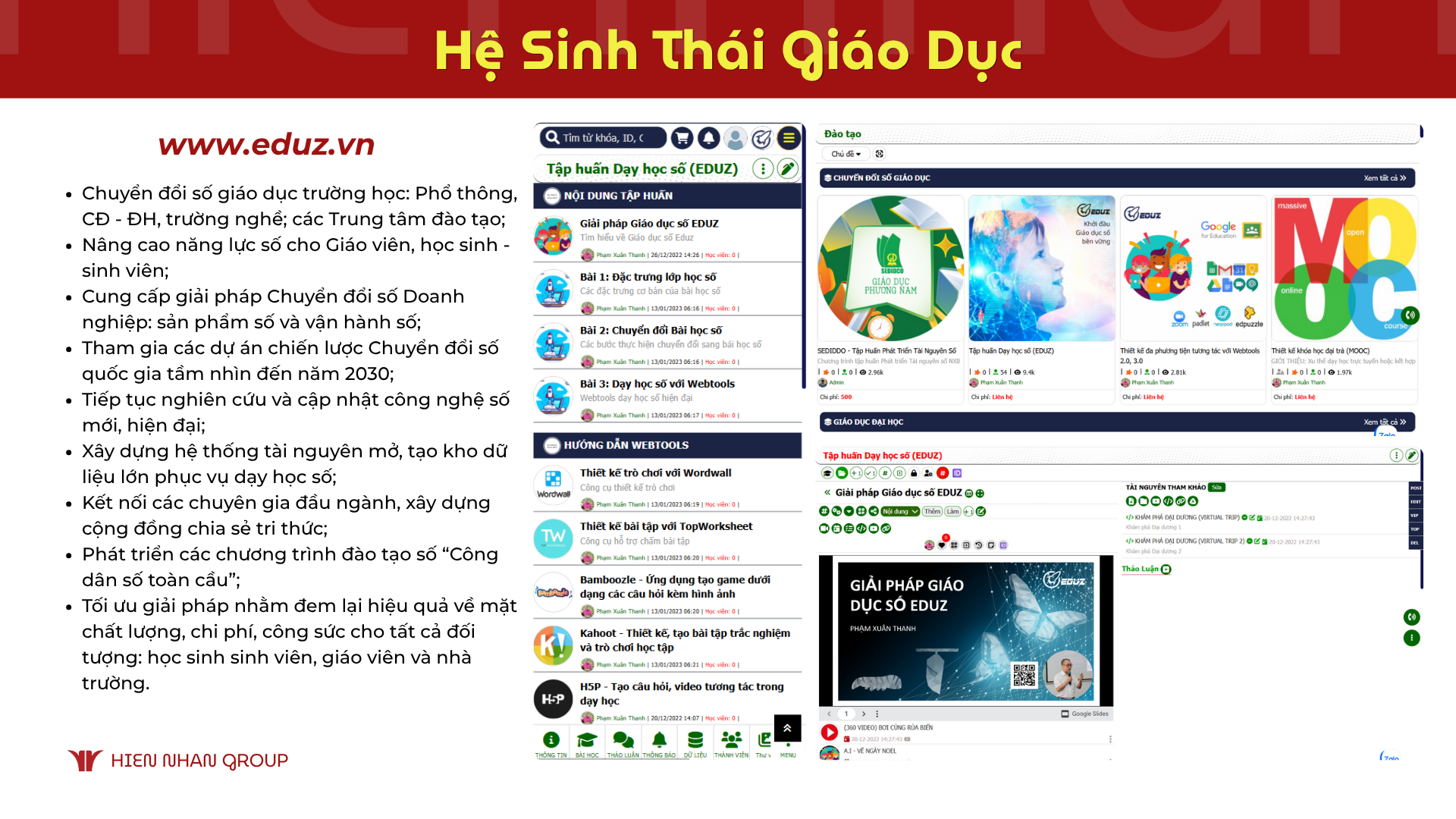 - Triển khai Hệ Sinh Thái tại các tổ chức, hiệp hội, doanh nghiệp, trường học và trung tâm