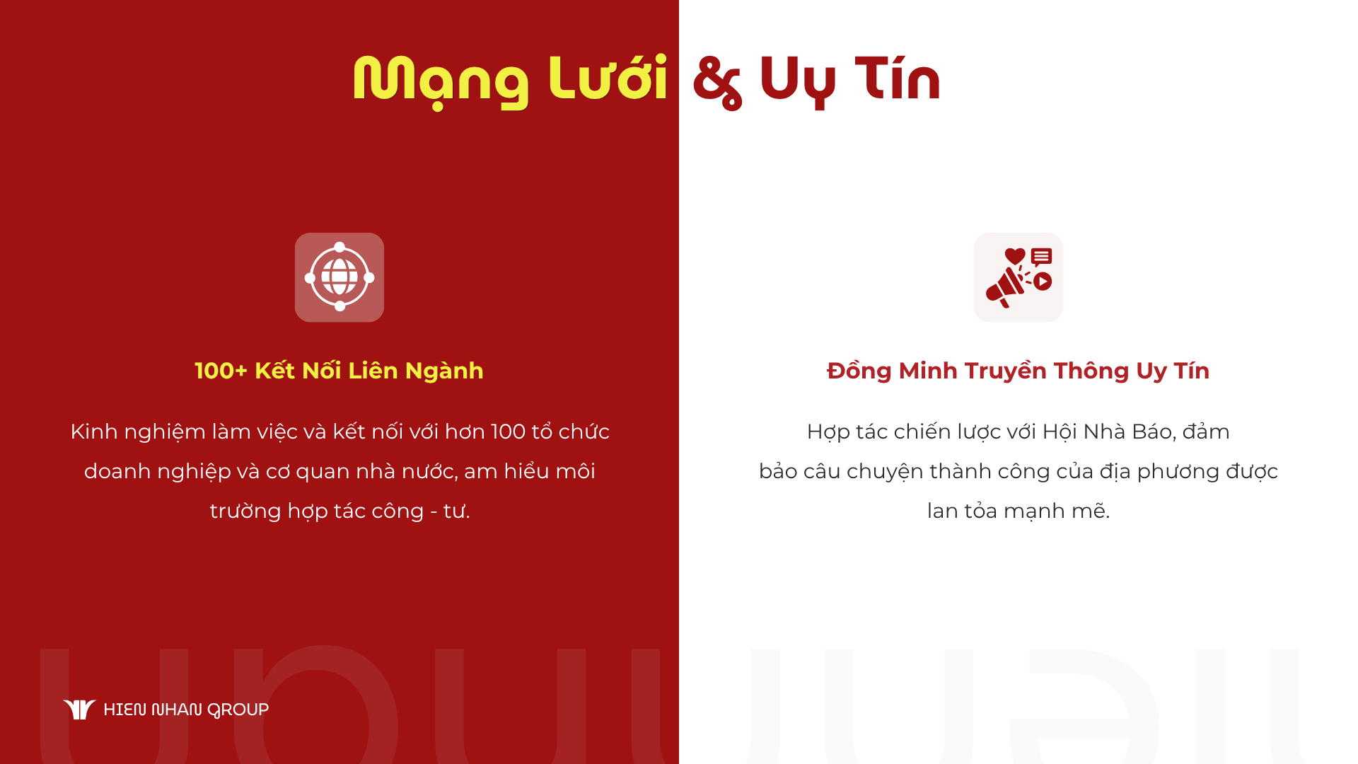 Cảm ơn quý khách hàng - đối tác đã luôn tin tưởng, đồng hành cùng Hiền Nhân Group. Chúng tôi mong muốn mang lại những giá trị tuyệt vời không chỉ cho mỗi cá nhân, mà còn cho cộng đồng, doanh nghiệp. Chúng tôi làm việc với tinh thần luôn luôn phụng sự - luôn luôn đóng góp, cùng nhau phát triển.