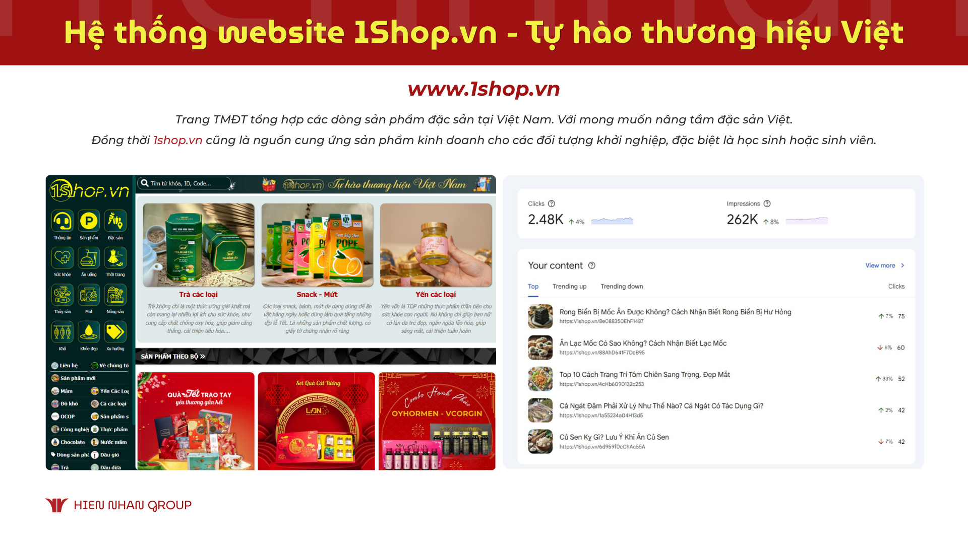 Trang TMĐT tổng hợp các dòng sản phẩm đặc sản tại Việt Nam. Với mong muốn nâng tầm đặc sản Việt. Đồng thời 1shop.vn cũng là nguồn cung ứng sản phẩm kinh doanh cho các đối tượng khởi nghiệp, đặc biệt là học sinh hoặc sinh viên.