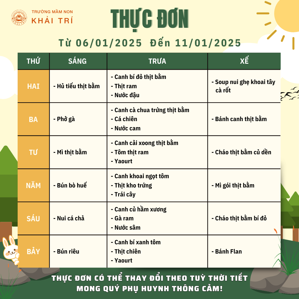 Thực Đơn Tuần Mới (Từ 06/01/2025 - 11/01/2025)