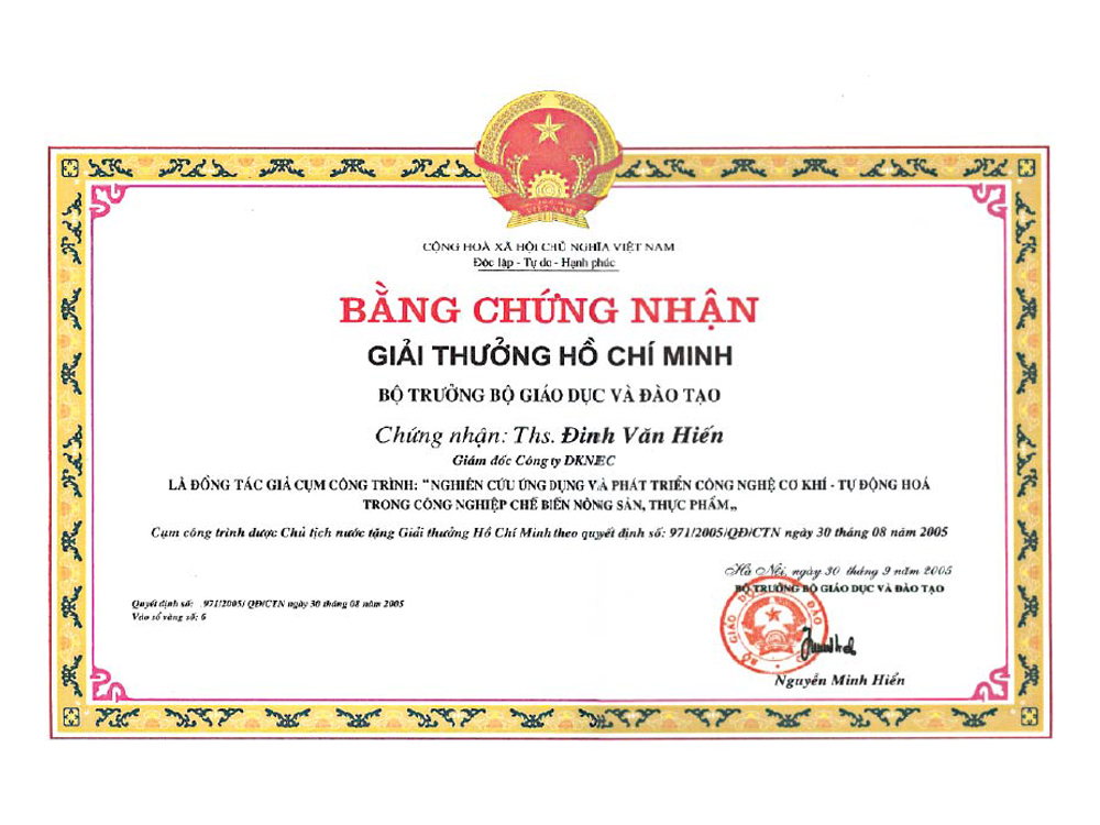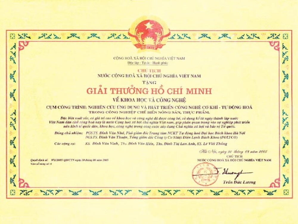 - "Giải thưởng Hồ Chí Minh về Khoa học - Công nghệ" năm 2005