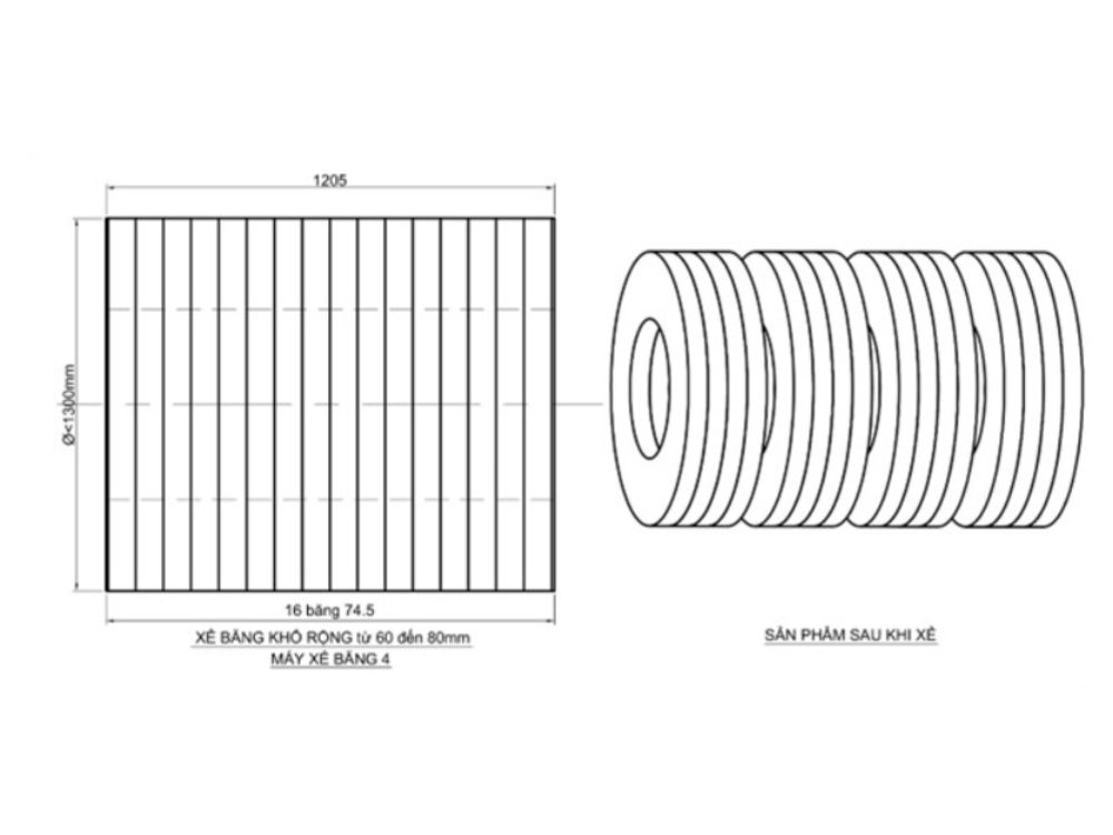 Gia công xẻ cuộn mỏng, chia thép cuộn khổ lớn thành băng nhỏ chuẩn xác.