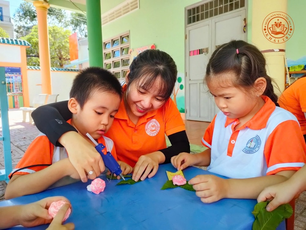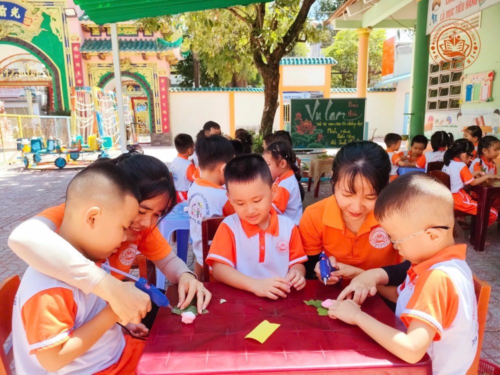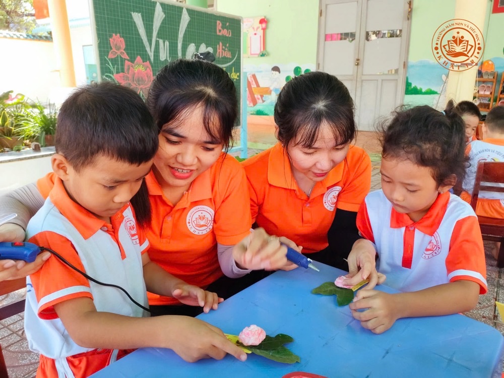 Hoạt động không chỉ giúp các bé hiểu thêm về văn hóa truyền thống của dân tộc mà còn rèn luyện kỹ năng thủ công.