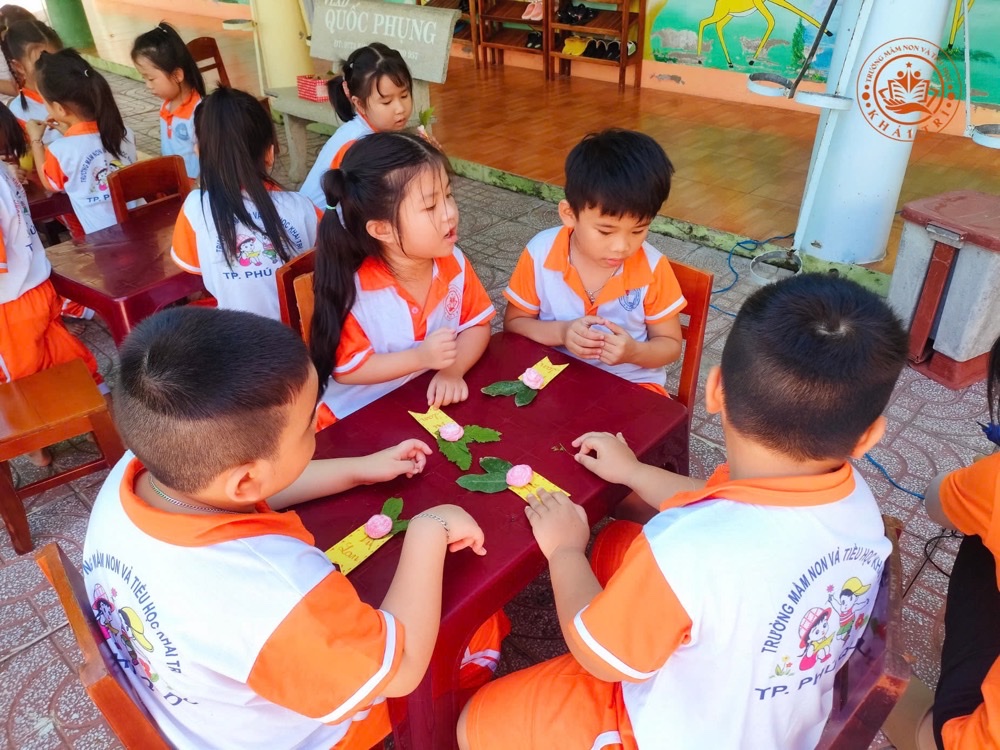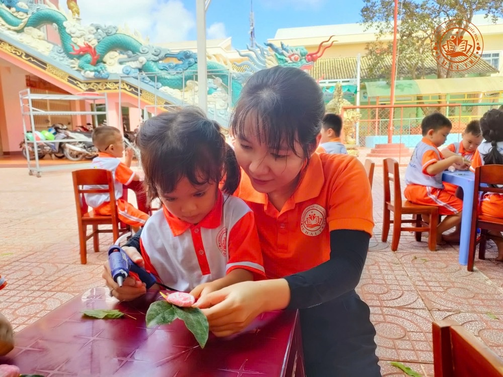 Đặc biệt, trong buổi học hôm nay, các bé đã tự tay làm những bông hoa hồng xinh xắn để cài áo và gửi tặng Ba Mẹ. Những bông hoa nhỏ bé tuy đơn giản nhưng lại chứa đựng tấm lòng chân thành của từng bé, là món quà tuyệt vời để thể hiện lòng hiếu thảo trong dịp Lễ Vu Lan.