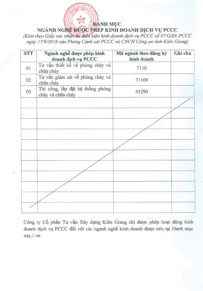 Ngày 15/6/1996 Chủ tịch UBND tỉnh ký Giấy phép thành lập công ty cổ phần số 003347 GP/TLDN-03 với các nội dung: Tên công ty: CÔNG TY CỔ PHẦN TƯ VẤN XÂY DỰNG KIÊN GIANG - Trụ sở: số 19C, Minh Mạng, phường Vĩnh Thanh Vân, thị xã Rạch Giá, tỉnh Kiên Giang - Ngành nghề kinh doanh: Lập báo cáo tiền khả thi và khả thi; Khảo sát, quy hoạch, thiết kế; tư vấn thẩm định; lập và đánh giá hồ sơ dự thầu; giám sát kỹ thuật; kiểm định chất lượng; quản lý dự án; thi công thử nghiệm và trang trí nội thất các công trình đặc biệt được UBND tỉnh cho phép – Vốn điều lệ: 500.000.000đ (năm trăm triệu đồng) – Thời gian hoạt động: 30 năm.