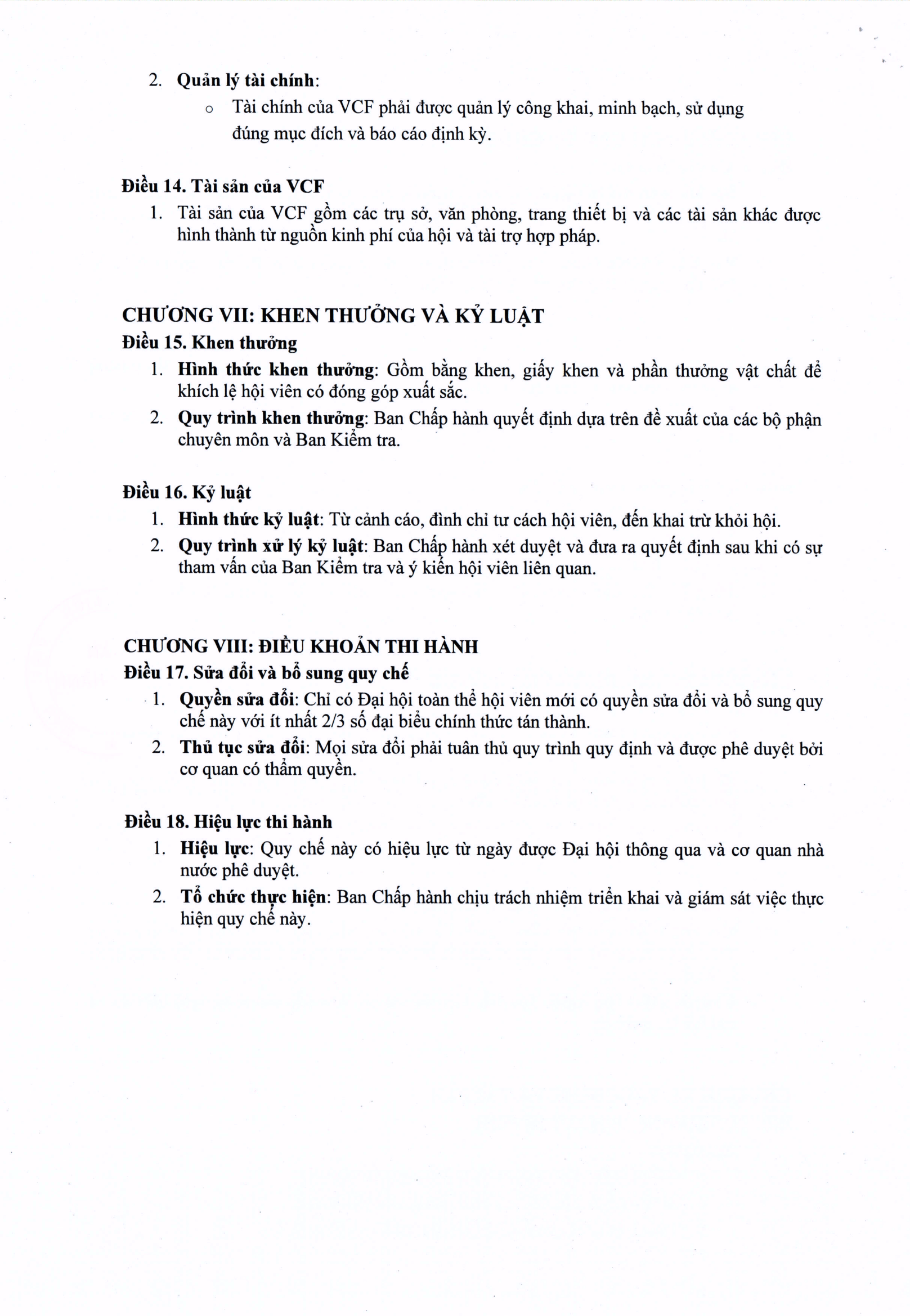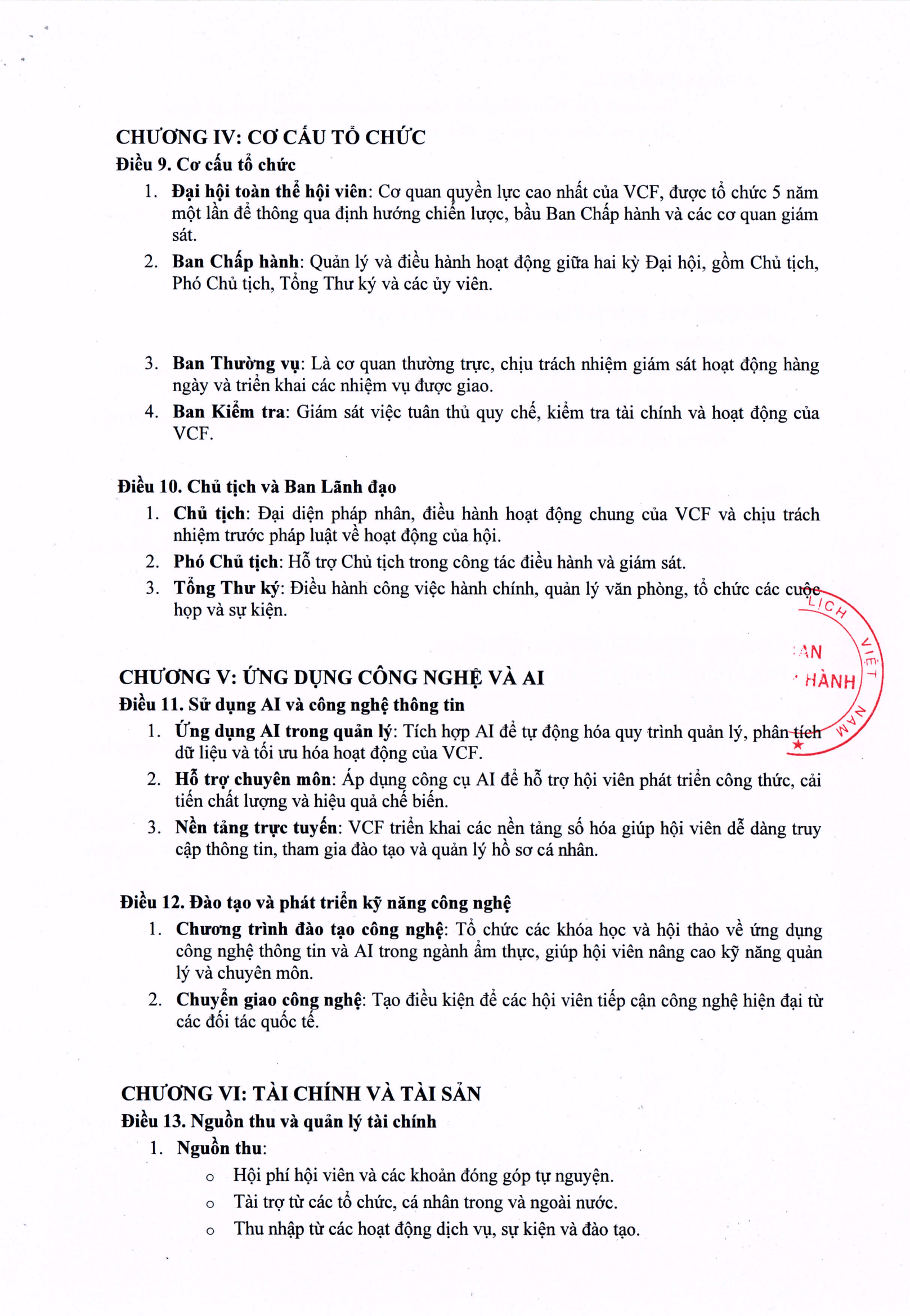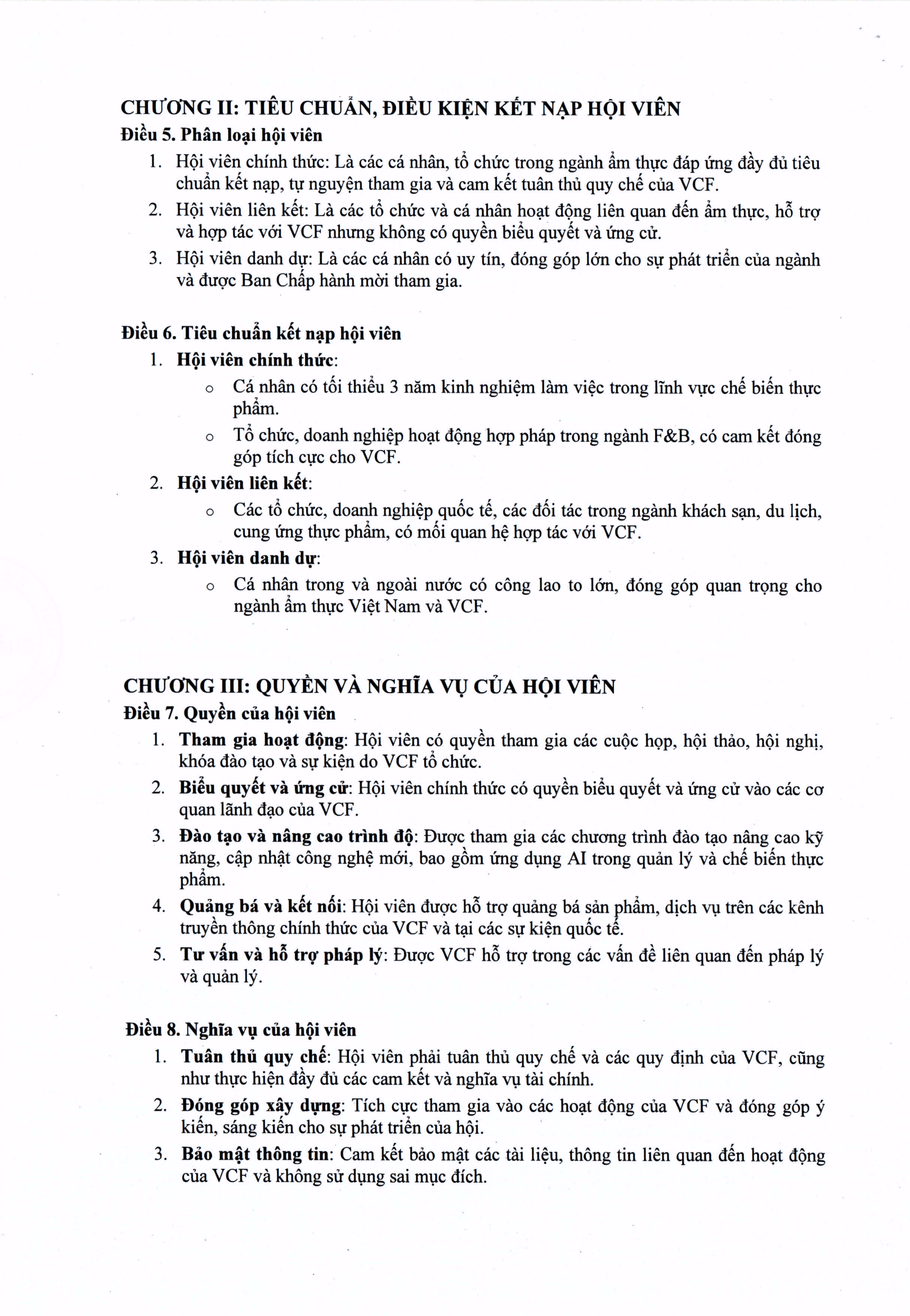Với mạng lưới hợp tác rộng rãi bao gồm 11 Chi hội trực thuộc và 3.391 hội viên trên toàn lãnh thổ Việt Nam, VCF hy vọng sẽ trở thành ngôi nhà mơ ước cho không chỉ các đầu bếp chuyên nghiệp mà còn cho những người yêu ẩm thực Việt Nam. VCF còn là nơi thúc đẩy hội nhập nghề nghiệp, mở ra cơ hội học tập, giao lưu, thi tay nghề, trao đổi chuyên gia và phát triển nghề nghiệp bền vững cho hội viên trong nước và quốc tế.