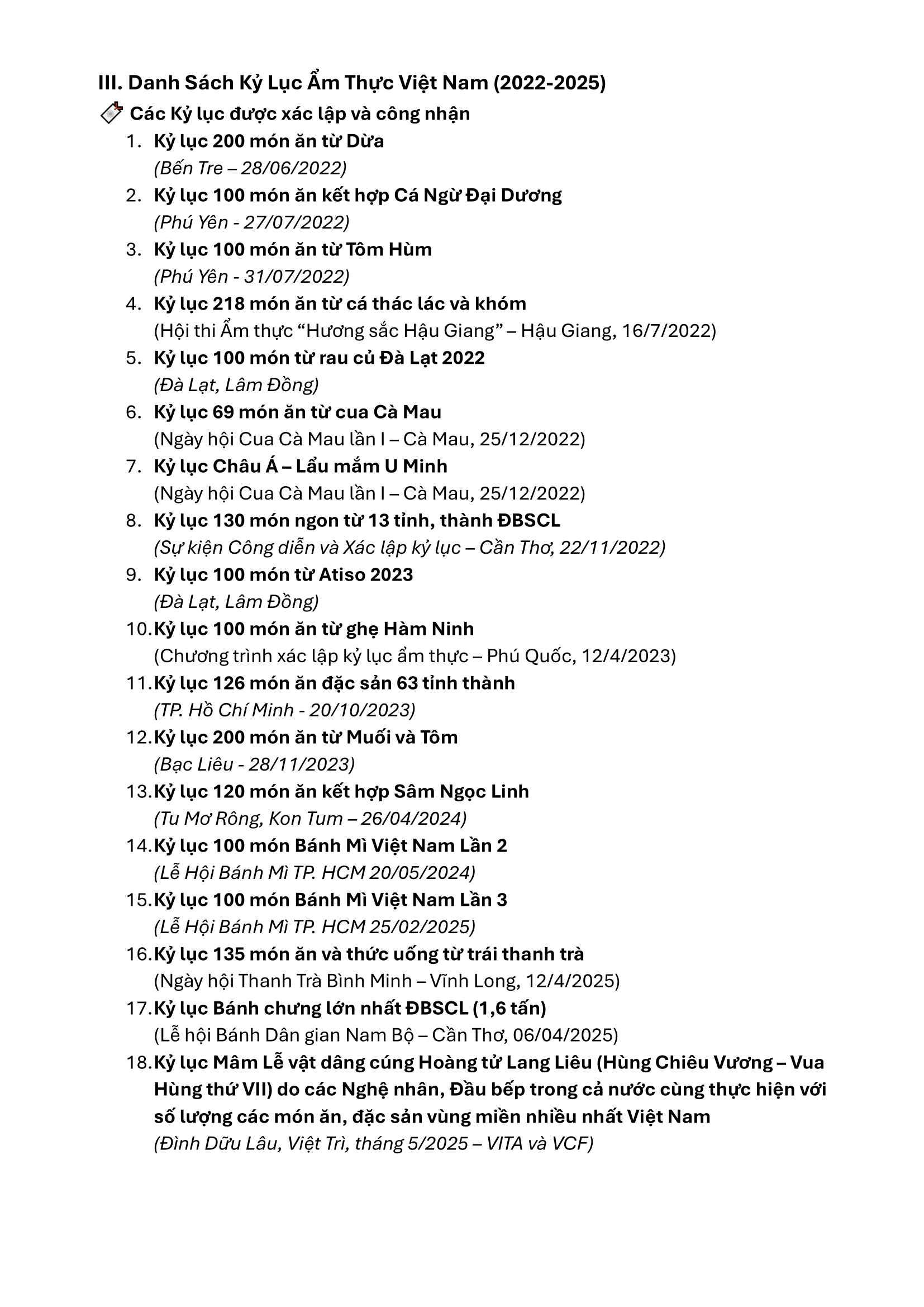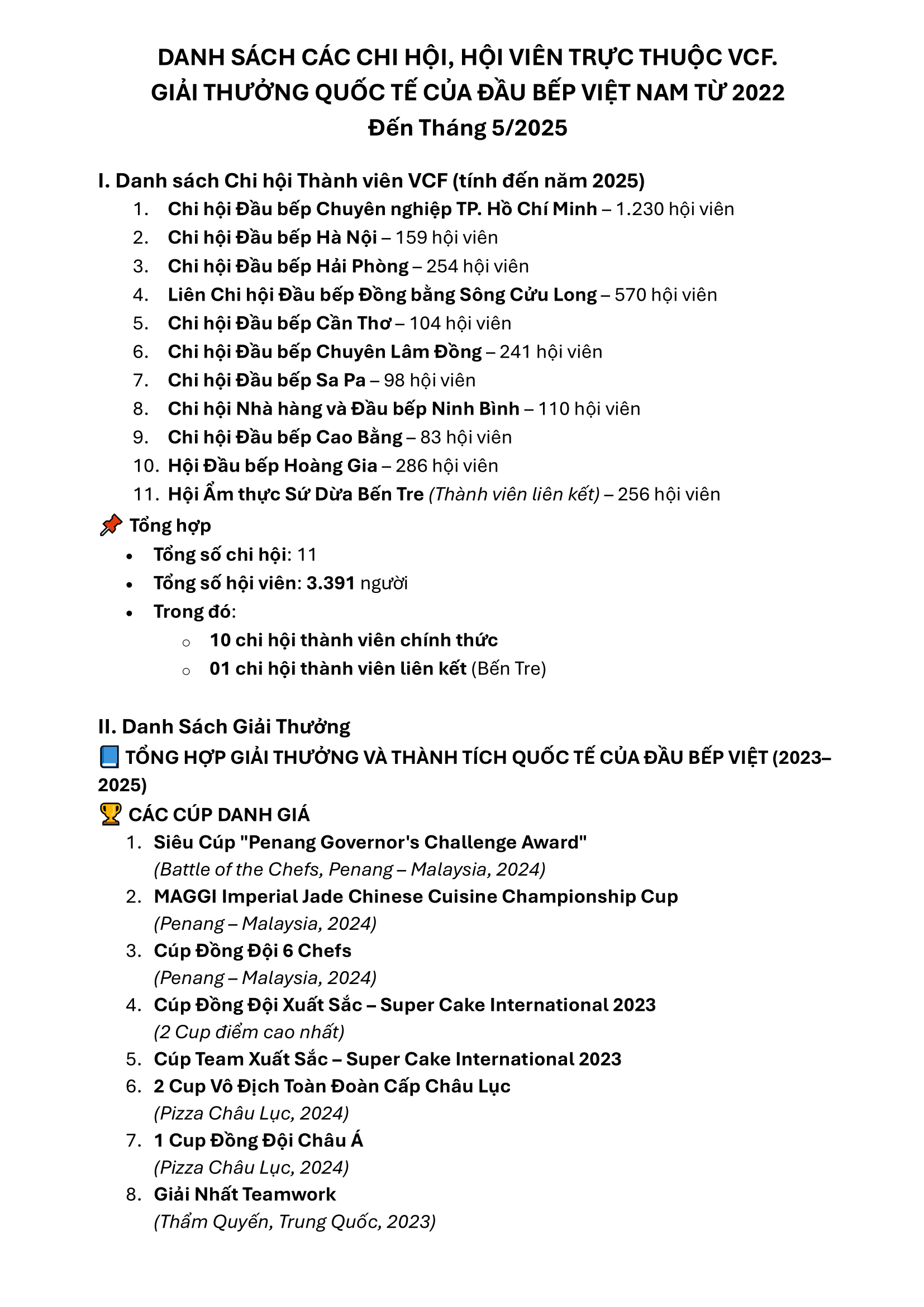 Song song đó, VCF luôn chú trọng bảo tồn và phát huy giá trị ẩm thực Việt Nam, kết hợp hài hòa giữa bản sắc truyền thống và tư duy hiện đại, góp phần nâng tầm ẩm thực Việt trở thành nguồn lực cạnh tranh trong phát triển kinh tế, du lịch và văn hóa quốc gia.