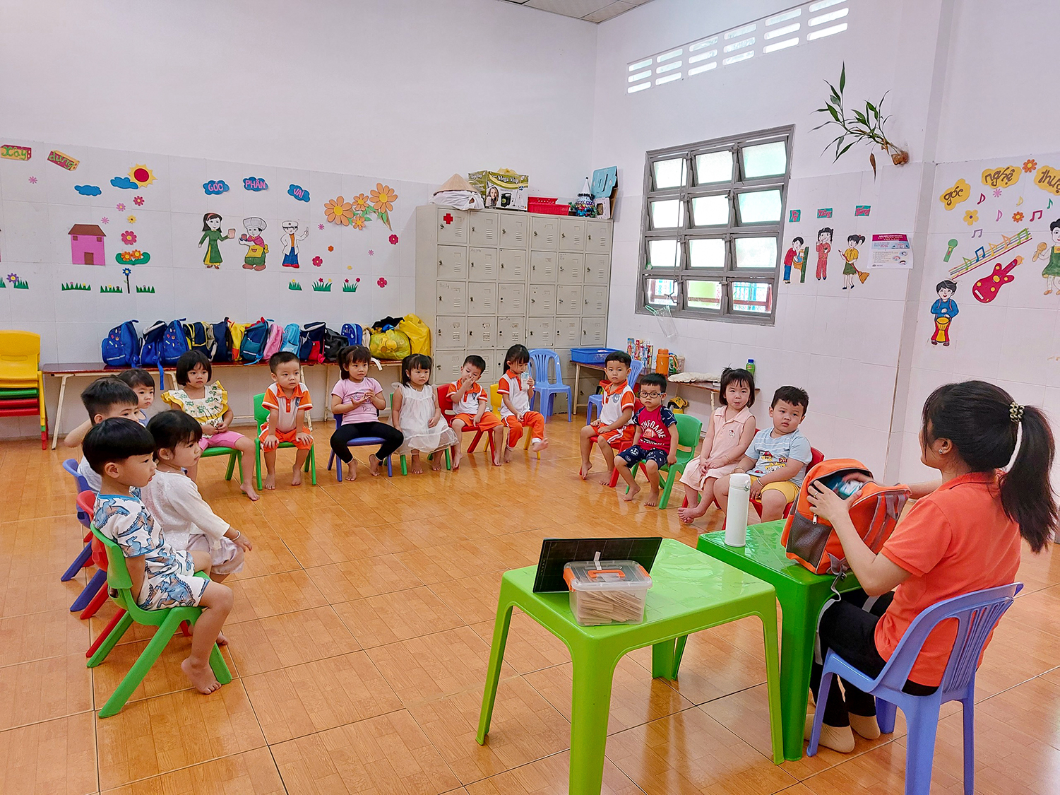 Ngoài ra, trò chơi này còn giúp bé phát triển ngôn ngữ và khả năng giao tiếp. Khi bé nhận biết và tên gọi các đồ dùng, cô giáo sẽ khuyến khích bé diễn đạt ý kiến, miêu tả và chia sẻ thông tin về chúng. Bé có thể sử dụng từ ngữ, câu chuyện và cảm xúc của mình để tương tác với người khác. Điều này không chỉ giúp bé phát triển kỹ năng ngôn ngữ mà còn xây dựng sự tự tin và sự thoải mái trong việc giao tiếp với người khác.