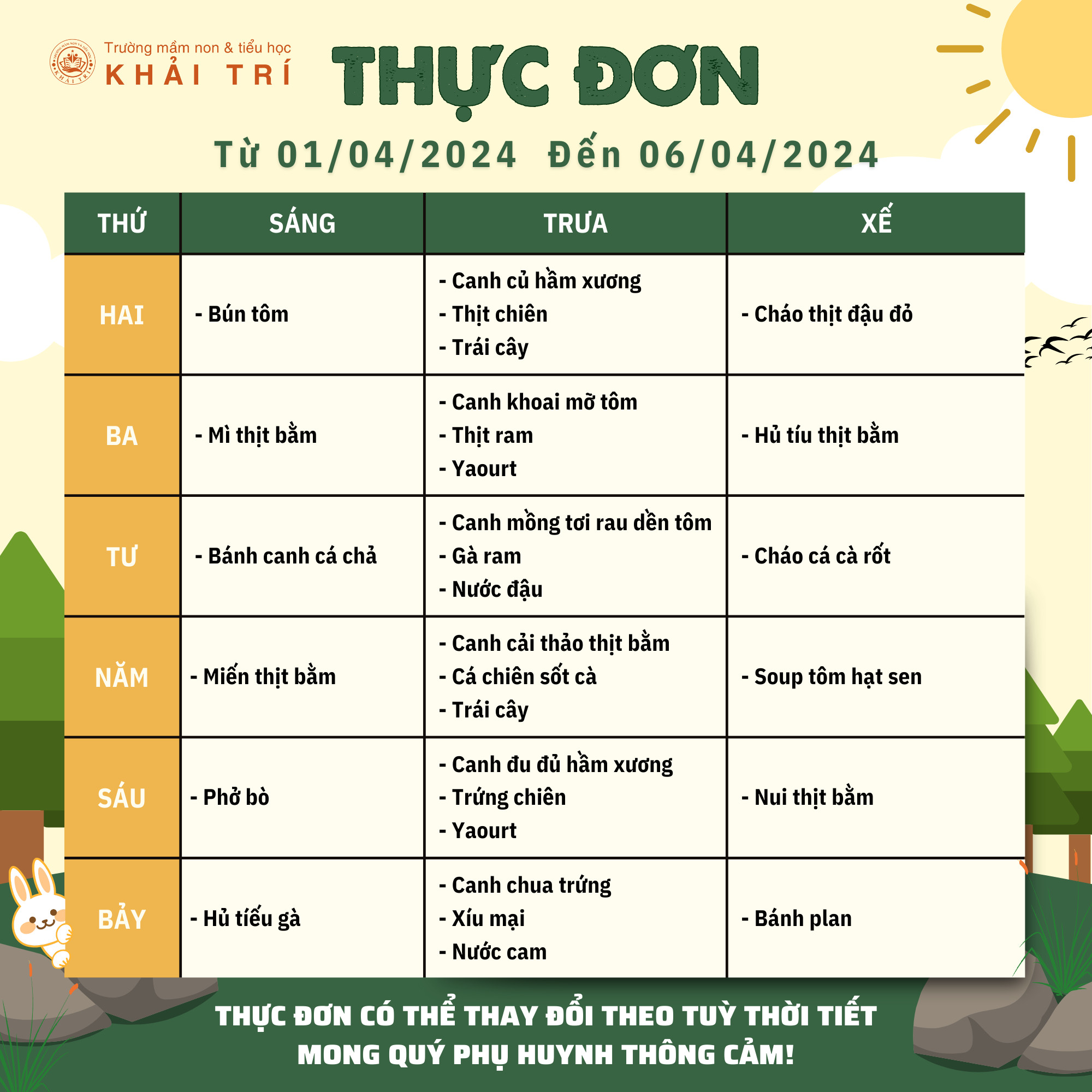 Thực Đơn Tuần Mới (Từ 01/04/2024 - 06/04/2024)