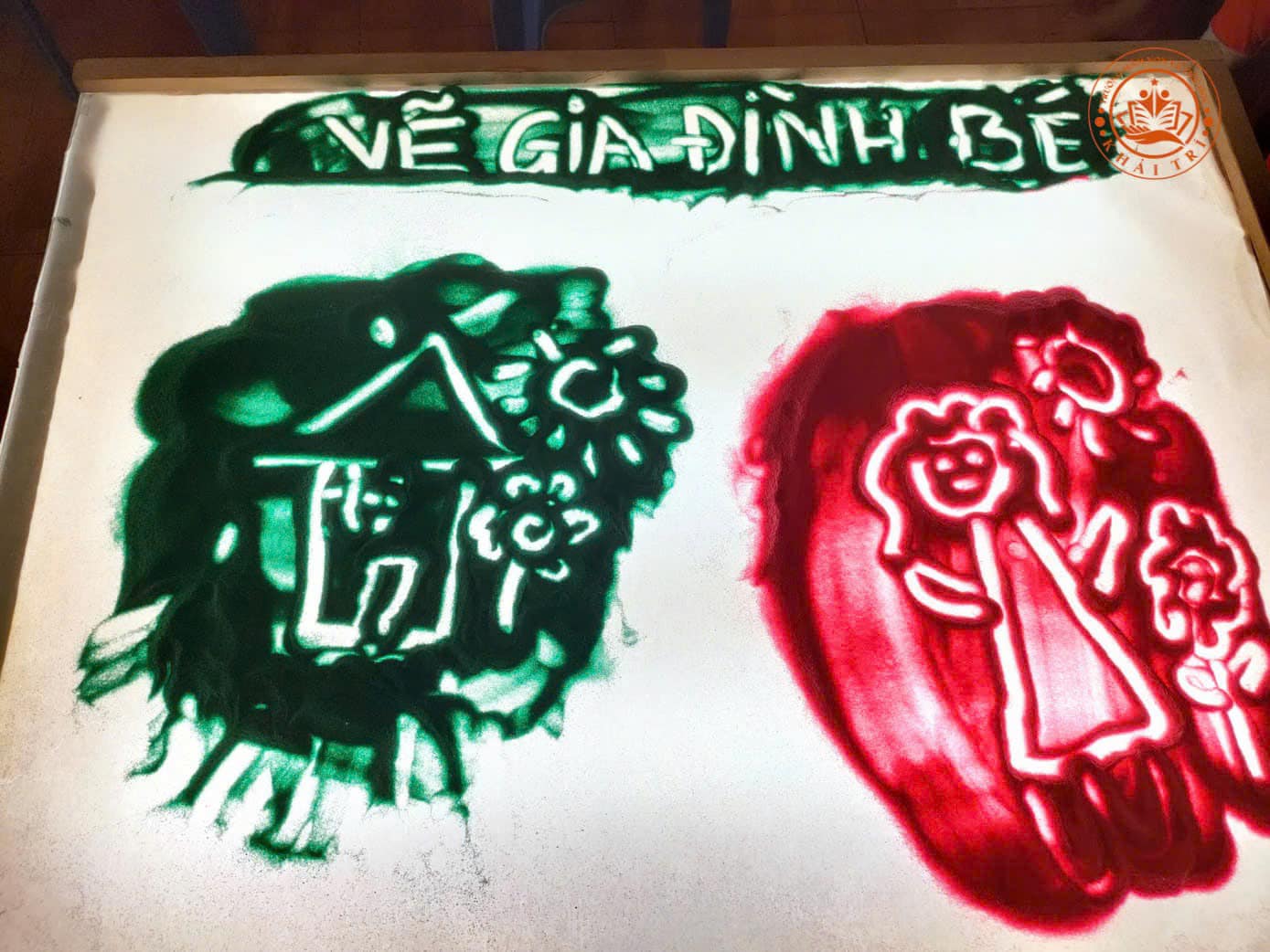 Khi bắt đầu hoạt động, giáo viên sẽ chuẩn bị bàn ánh sáng với các vật liệu như là cát màu, bàn ánh sáng. Các bé sẽ tự tay sáng tạo ra từng tác phẩm chân dung của gia đình mình, ánh sáng từ bàn sẽ làm nổi bật các tác phẩm của các bé, mang lại hiệu ứng trực quan tuyệt vời.