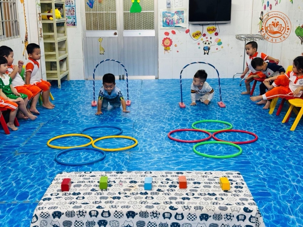 Dành cho các bé lớp nhỏ nhất tại trường Mầm Non Khải Trí, với hoạt động Bé Bò Chui Qua Cổng Và Bật Qua Vòng. Hoạt động này không chỉ tạo niềm vui mà còn giúp trẻ phát triển khả năng phối hợp tay chân, nâng cao sức khỏe và tăng cường nhận thức về màu sắc.