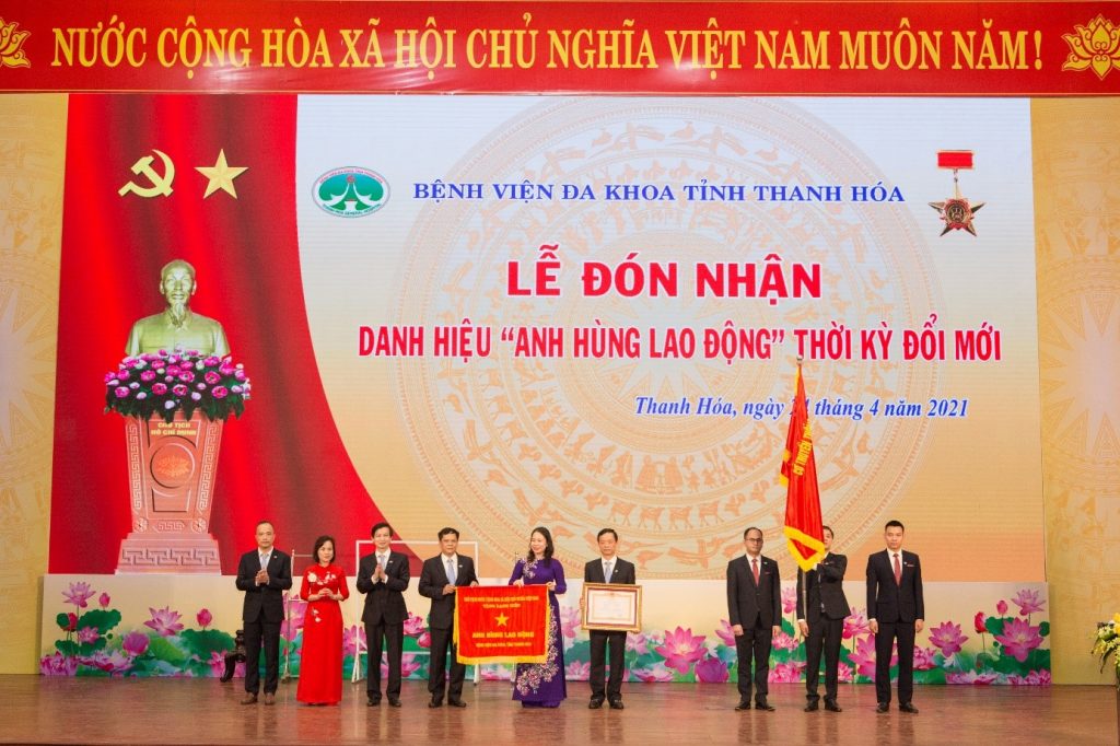 Phó Chủ tịch nước CHXH Chủ nghĩa Việt Nam Võ Thị Ánh Xuân trao tặng danh hiệu Anh hùng lao động cho Bệnh viện Đa khoa tỉnh Thanh Hoá.