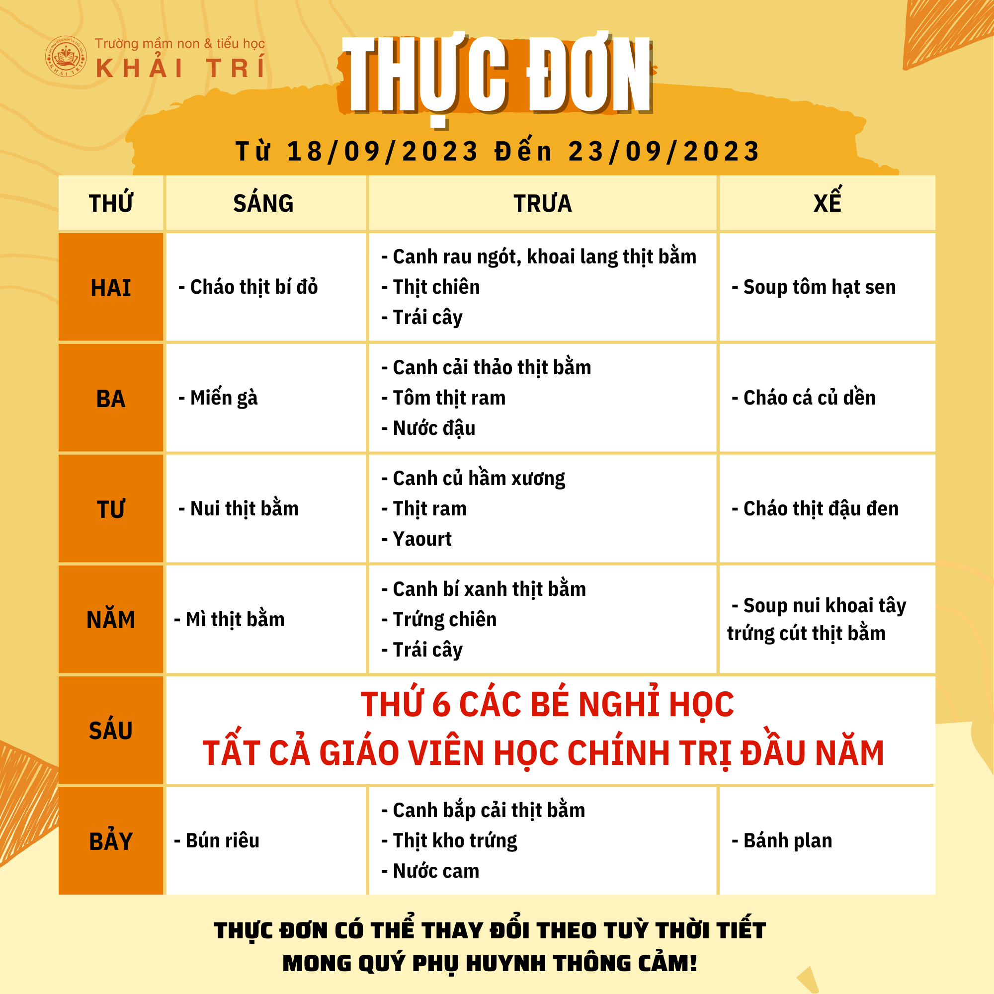 Thực Đơn Tuần Mới - Mỗi Ngày Bé Ăn Gì Tại Khải Trí