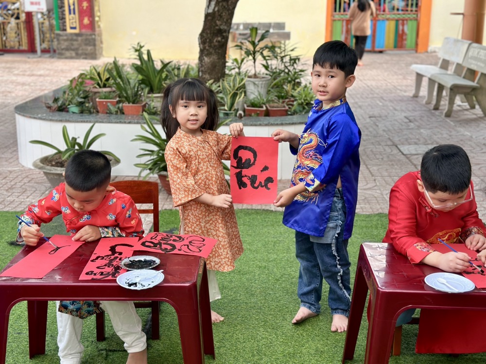 Mỗi năm, khi Xuân về, trường Mầm Non Khải Trí lại tổ chức một phiên chợ Tết sôi động và vui nhộn, mang lại một không khí rộn ràng và ấm áp. Các bé cũng có cơ hội được hòa mình vào không khí rộn ràng, vui tươi và học hỏi những giá trị văn hóa truyền thống từ các hoạt động nghệ thuật và trò chơi tại phiên chợ.