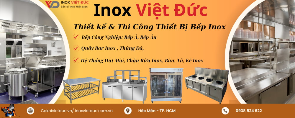 Công ty Cơ Khí Việt Đức (Inox Việt Đức) là đơn vị chuyên sản xuất – gia công inox theo yêu cầu và cung cấp thiết bị bếp công nghiệp. Với nhiều năm kinh nghiệm, đội ngũ kỹ thuật viên lành nghề cùng dây chuyền máy móc hiện đại, Việt Đức đã trở thành địa chỉ tin cậy cho hàng nghìn khách hàng trong lĩnh vực nhà hàng, khách sạn, bếp ăn công nghiệp và các công trình dân dụng.