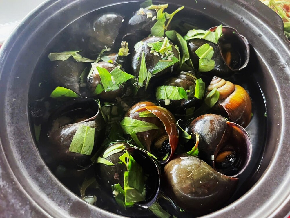 - Ốc hương cháy tỏi – món ăn được yêu thích nhờ hương tỏi vàng giòn, quyện cùng vị ngọt béo của ốc hương.